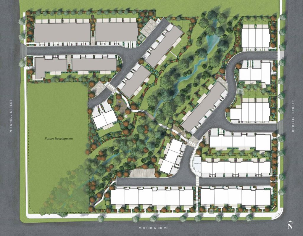 Introducing a presales project in Coquitlam: Rocklin on the Creek is a new townhouse development by Woodbridge Homes, located at 1220 Rocklin St. This collection of 72 three- to five-bedroom townhomes is built with future generations in mind. Situated along a protected creek, this is a community with a clear vision for livability—set in the natural beauty of Burke Mountain.