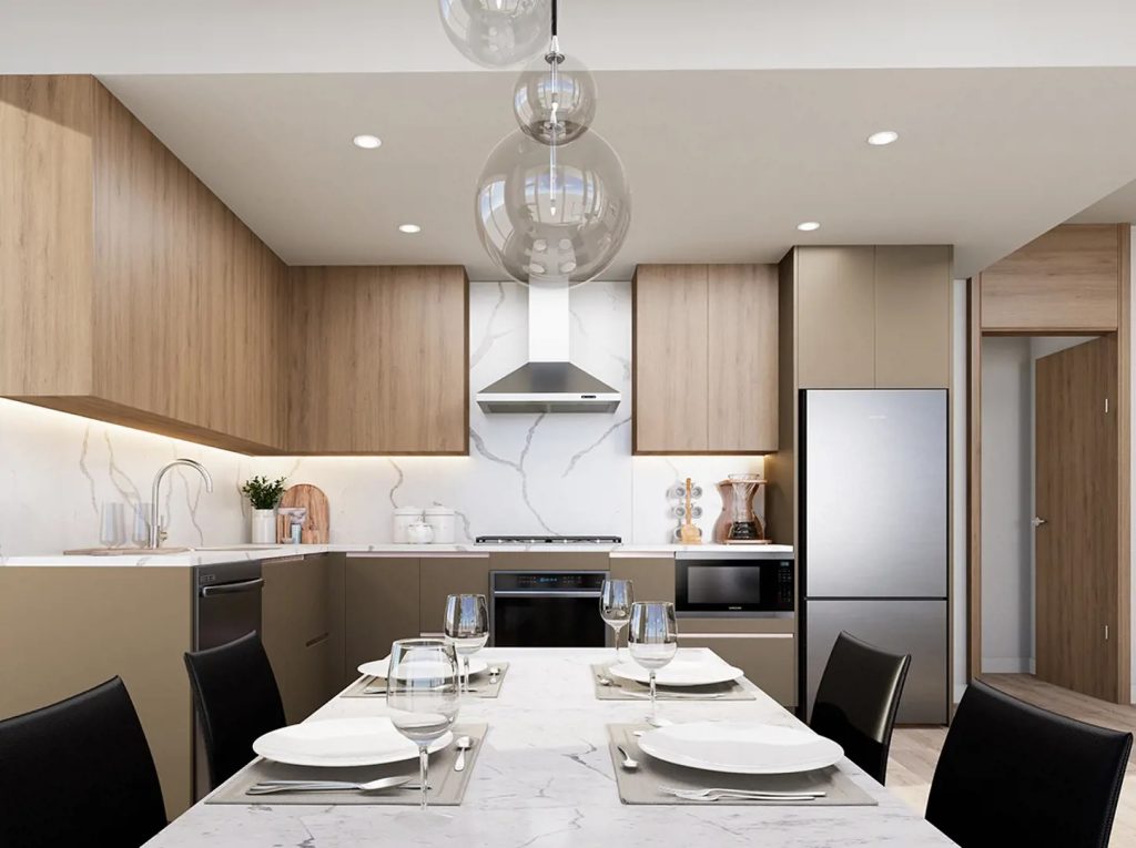 Sky Living is Allure Ventures tower in Surrey Central. The tower is a five-minute walk from King George Skytrain Station. Amenities in the area include shopping centers, restaurants, parks, and educational institutions while the project itself has 30,000 sq.ft. of amenities. The deposit structure is as follows: 1st deposit of 5% within seven days, 2nd deposit of 5% due three months from 1st deposit, 3rd deposit of 5% from 2nd deposit, and 4th deposit of 5% due three months from 3rd deposit. The assignment fee is 3% with completion targeted for Spring 2027. All homes will come with A/C., Kitchen Floor: Laminate, Kitchen Counter: Quartz, Entry Floor: Laminate, Living Area Floor: Laminate, Bedroom Floor: Laminate, Main Bathroom Floor: Tile, Main Bathroom Counter: Quartz, Ensuite Bathroom Floor: Tile, Ensuite Bathroom Counter: Quartz, Appliance Finish: Stainless, Fridge: Bottom Freezer, Stove: Gas, Brands: Samsung, AC: Individual.