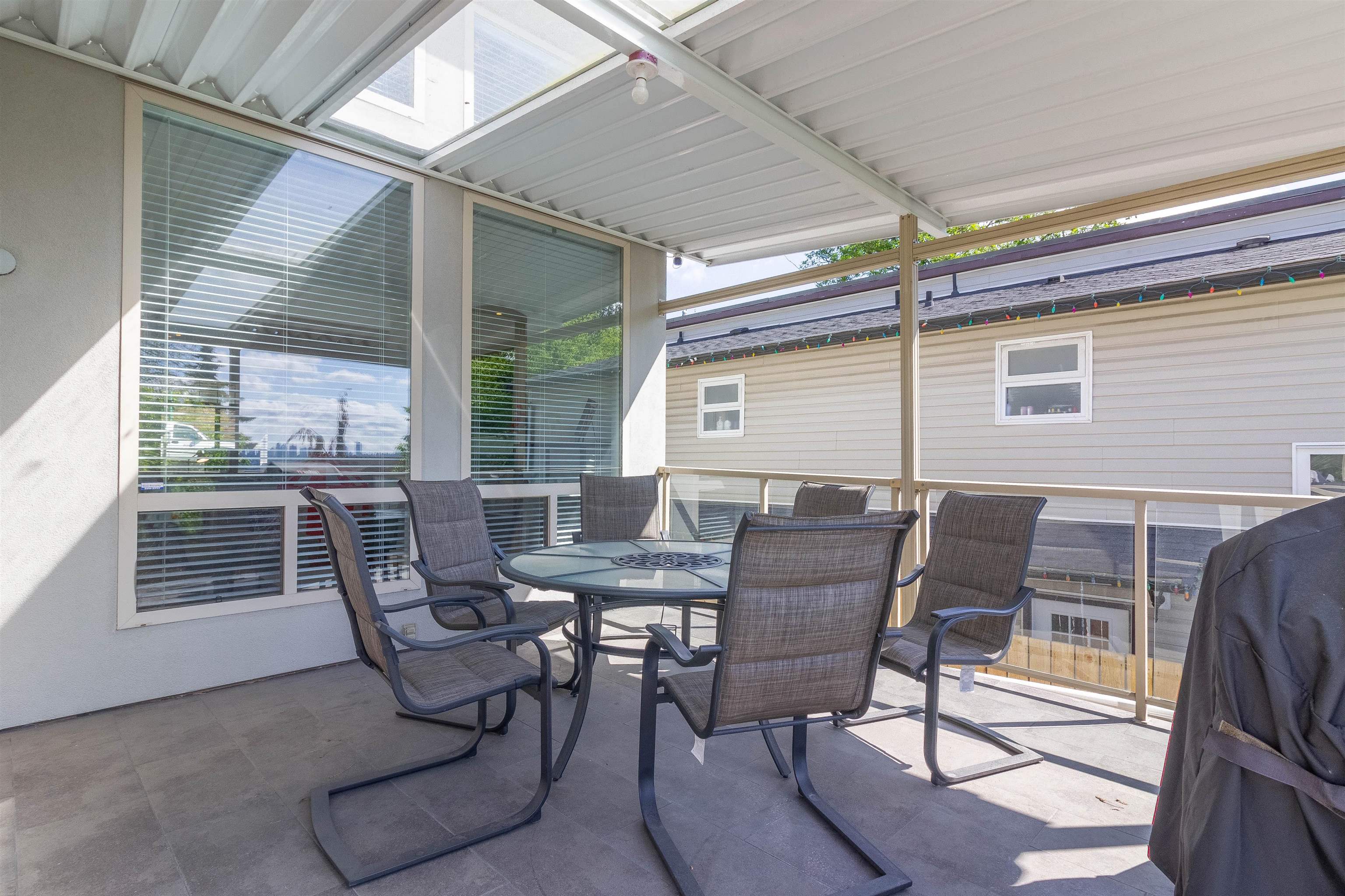 Welcome to this beautifully updated home with views of the Fraser River, nestled in the heart of Central Coquitlam. Step into a marble-tiled foyer under a bright skylight, leading to an impressive living room with 19' vaulted ceiling and a cozy gas fireplace. Flex space is ideal for home office or secondary lounge. Updated gourmet kitchen opens into the dining room. Enjoy outdoor living with both front and back covered decks, perfect for year-round enjoyment. Primary suite includes its own fireplace and a spa-inspired ensuite. Wake up each morning to beautiful southern views. Roof has been updated recently. Private fenced backyard is updated with new artificial turf and a covered patio with ample space for gatherings. Easy access to Lougheed Mall and North Road amenities.