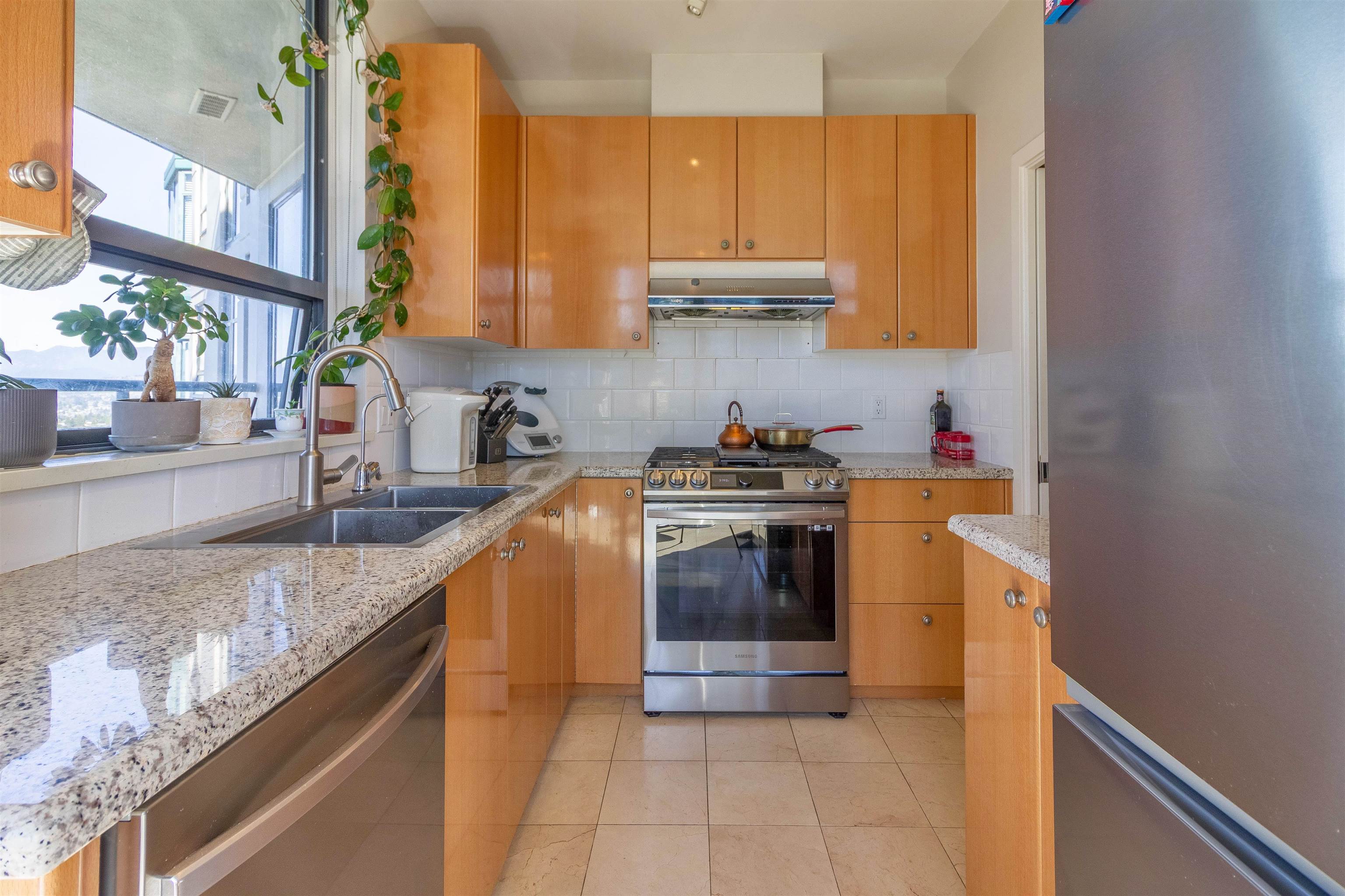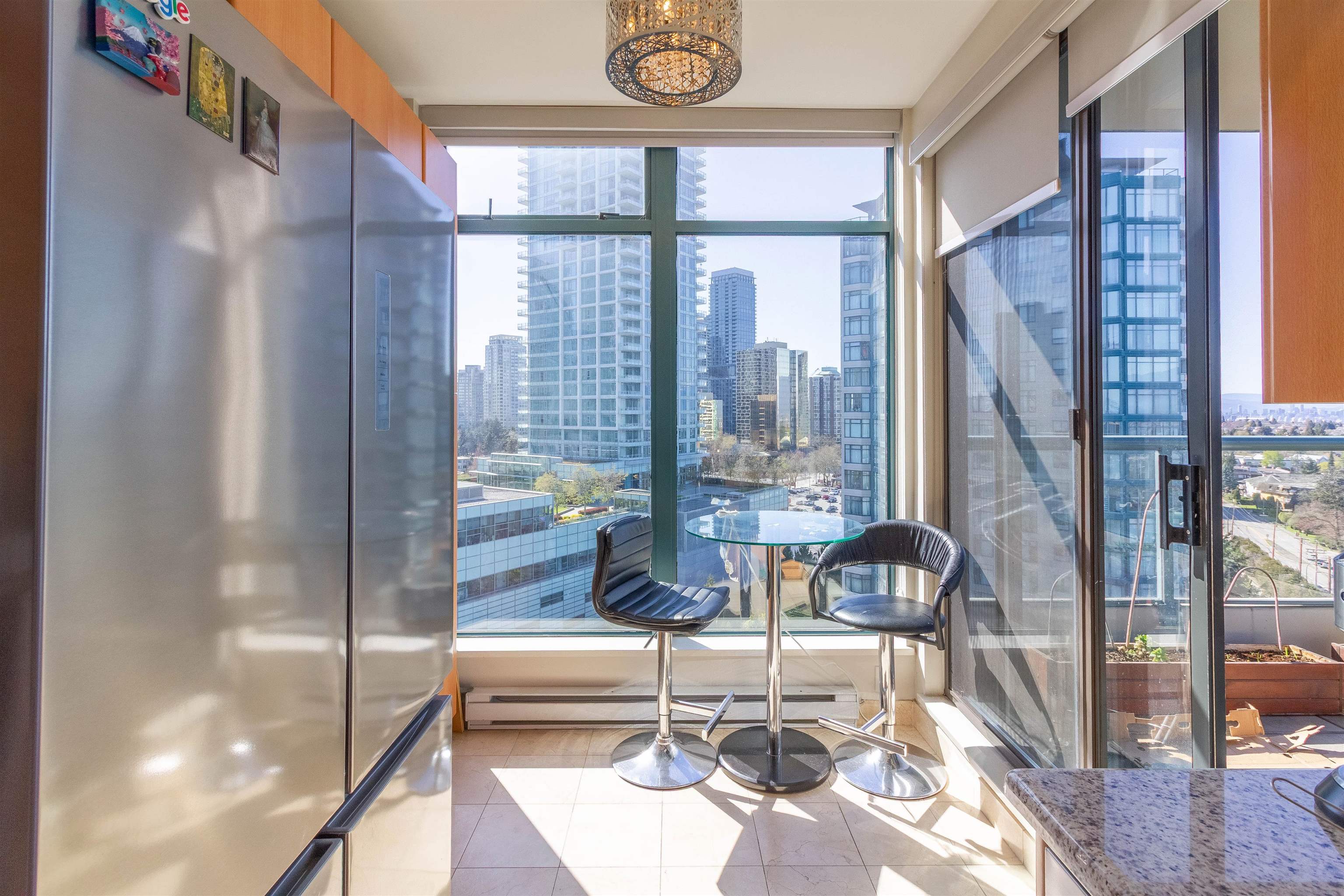 Welcome to The Monarch by BOSA, a rare 3 bed, 2 bath corner home offering 1,220 sq ft of bright, functional living. This standout unit features 2 separate balconies, capturing north-facing mountain views and southern natural light throughout. Spacious and well laid out, it's ideal for families or those seeking extra room to live and work. Comes with 2 side-by-side parking stalls and a larger corner storage locker. Unbeatable location-walk across the street to Crystal Mall and Metropolis at Metrotown for groceries, dining, cafes, retail, and entertainment. Metrotown SkyTrain is just minutes away, providing quick access across the city. A rare opportunity offering size, light, and convenience. School catchment Chaffey-Burke Elementary, Moscrop Secondary or a 10min drive to BCIT.