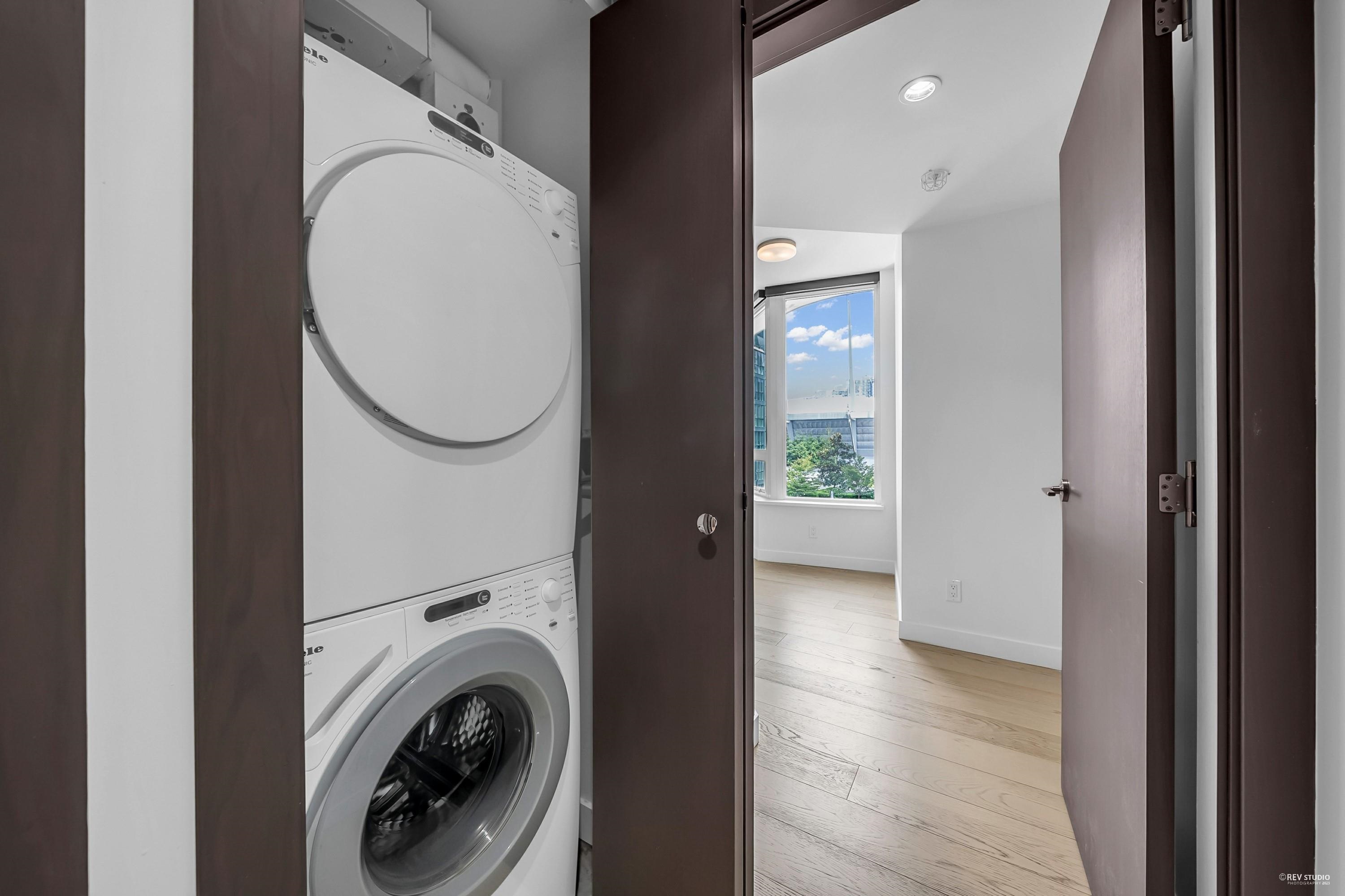 Don't miss this opportunity at One Pacific, a premier Concord development in Downtown Vancouver! This exceptional 2 bedroom + den residence not only provides a spacious and modern interior but also captivates with beautiful views of False Creek.Enjoy modern features such as high-end Miele appliances and quartz countertops,spa-inspired bathrooms, and engineered hardwood flooring throughout.The den provides valuable extra space for a home office or guest room.World-class amenities including an outdoor infinity pool, hot tub, rooftop garden, and exclusive access to the iconic ARC Sky Club's glass-bottom indoor pool. Complete with 24-hour concierge, steps from the marina, SkyTrain, Yaletown's finest dining and entertainment and 1 parking 1 storage locker.