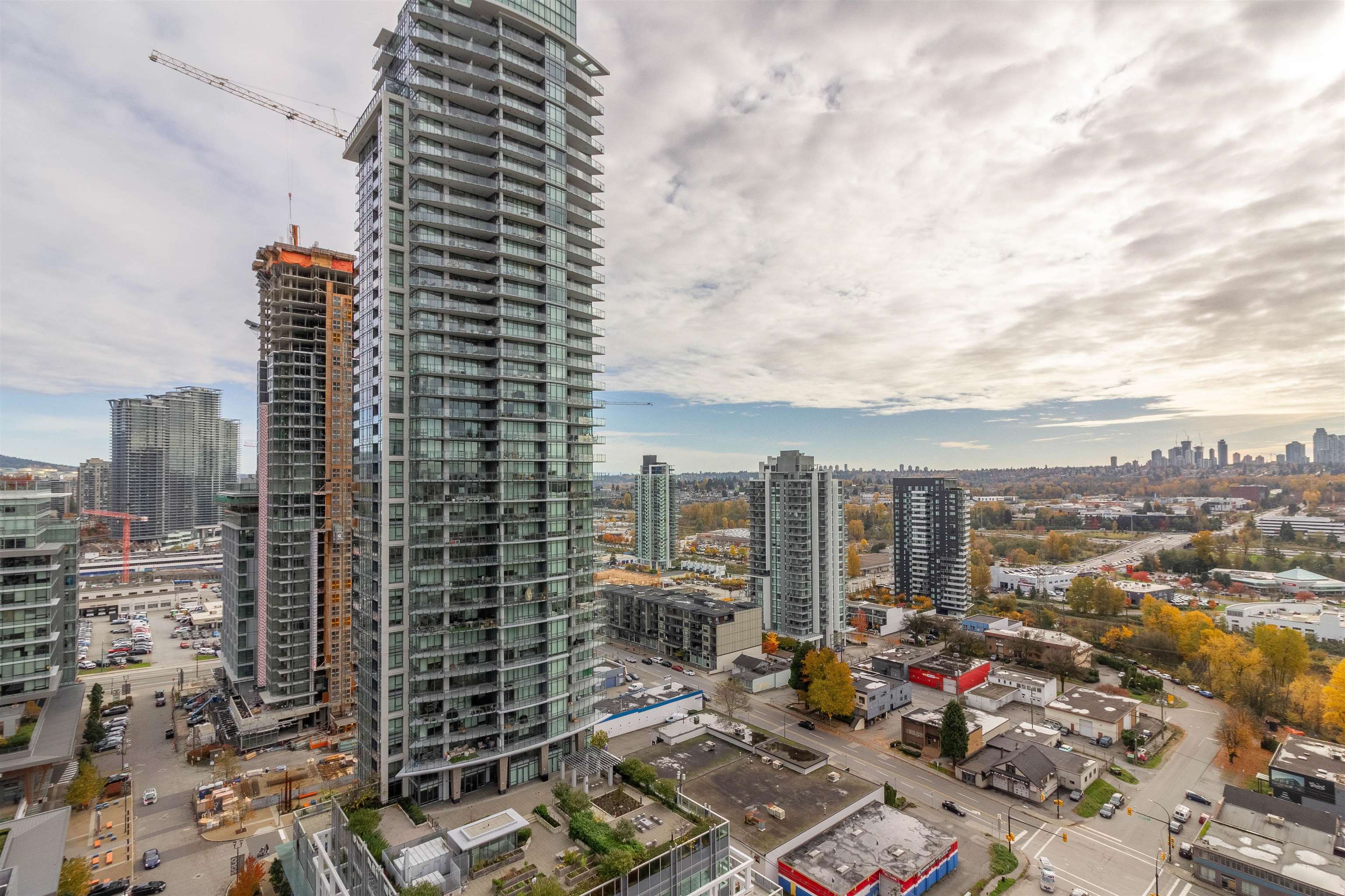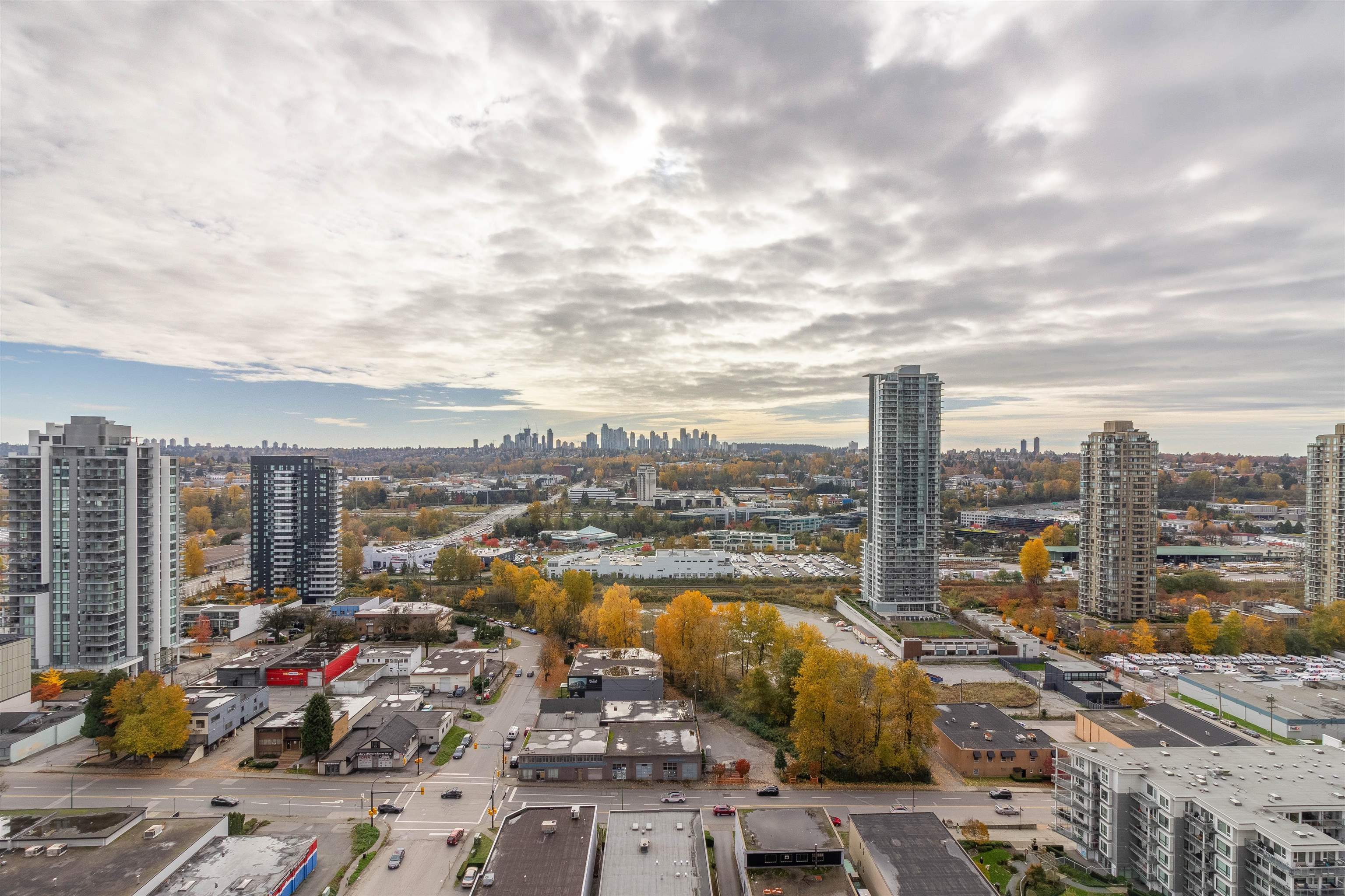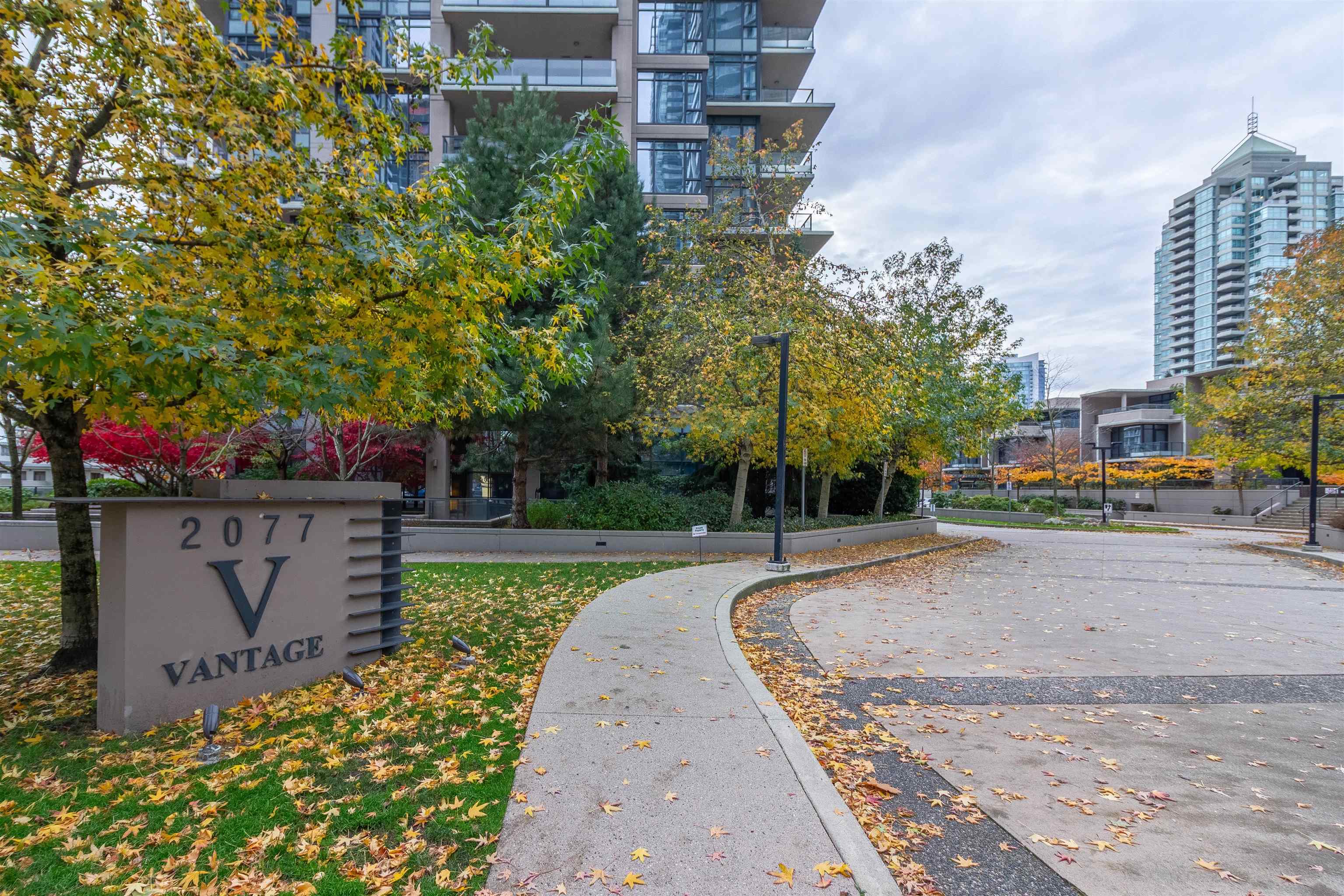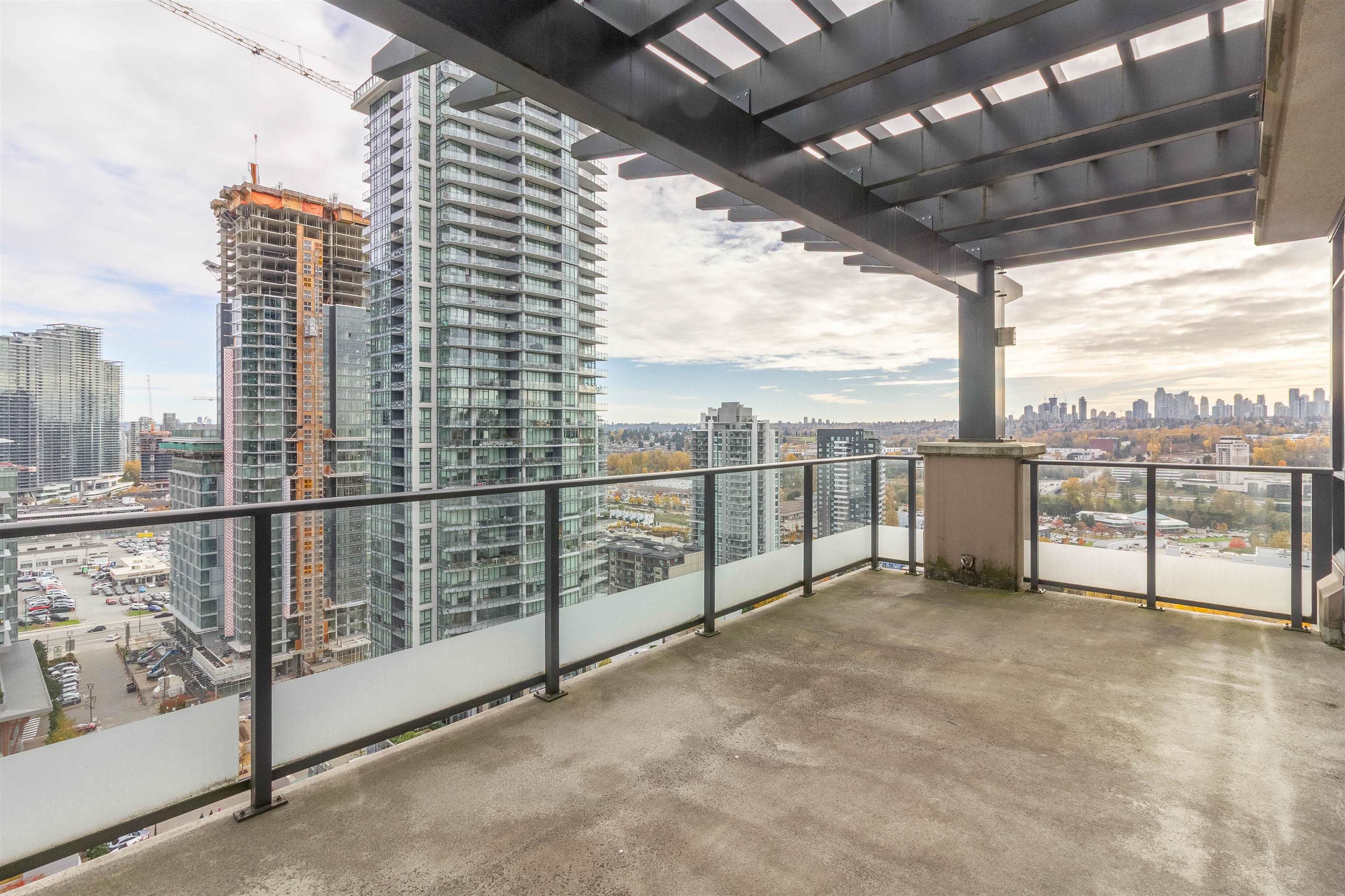 Welcome to VANTAGE by BOSA, a gem in the Heart of Brentwood! Perched high above the city, this spacious 2-bed+open den 2-bath home offers impressive 1248sf with 9' ceilings that flood the home with natural light. One of two unique layouts on the higher floors, this is truly a rare offering. Enjoy two balconies capturing panoramic southern city views and northeast mountain vistas. Open-concept living and dining areas flow into the kitchen with granite countertops and ample cabinetry. Primary suite is a true retreat, complete with an ensuite bathroom and spacious walk-in closet. Both bedrooms have access to the second private balcony. Amenities include concierge, gym, hot tub, sauna, and resident's lounge. Steps to Amazing Brentwood, Skytrain, shops and restaurants.