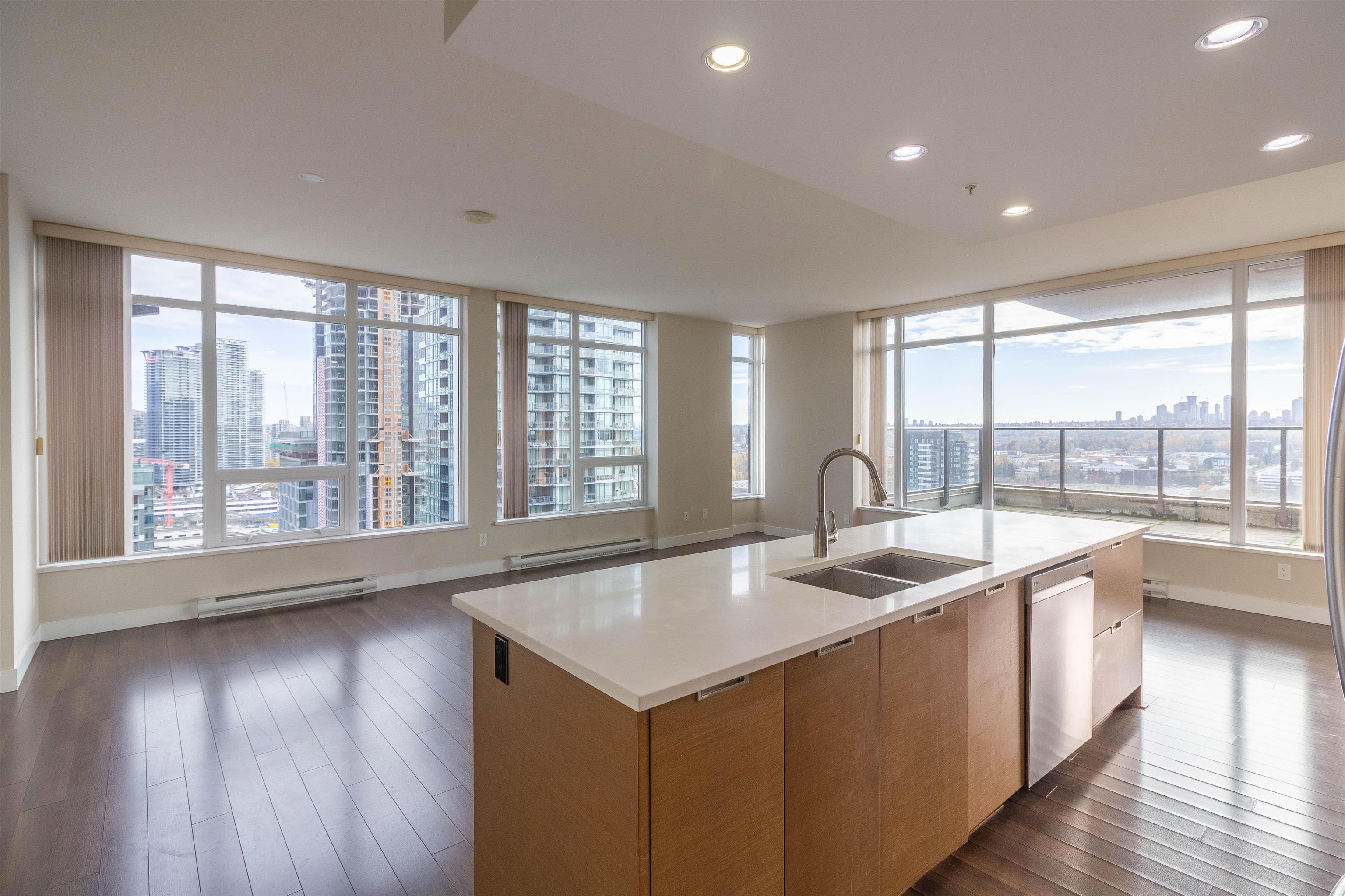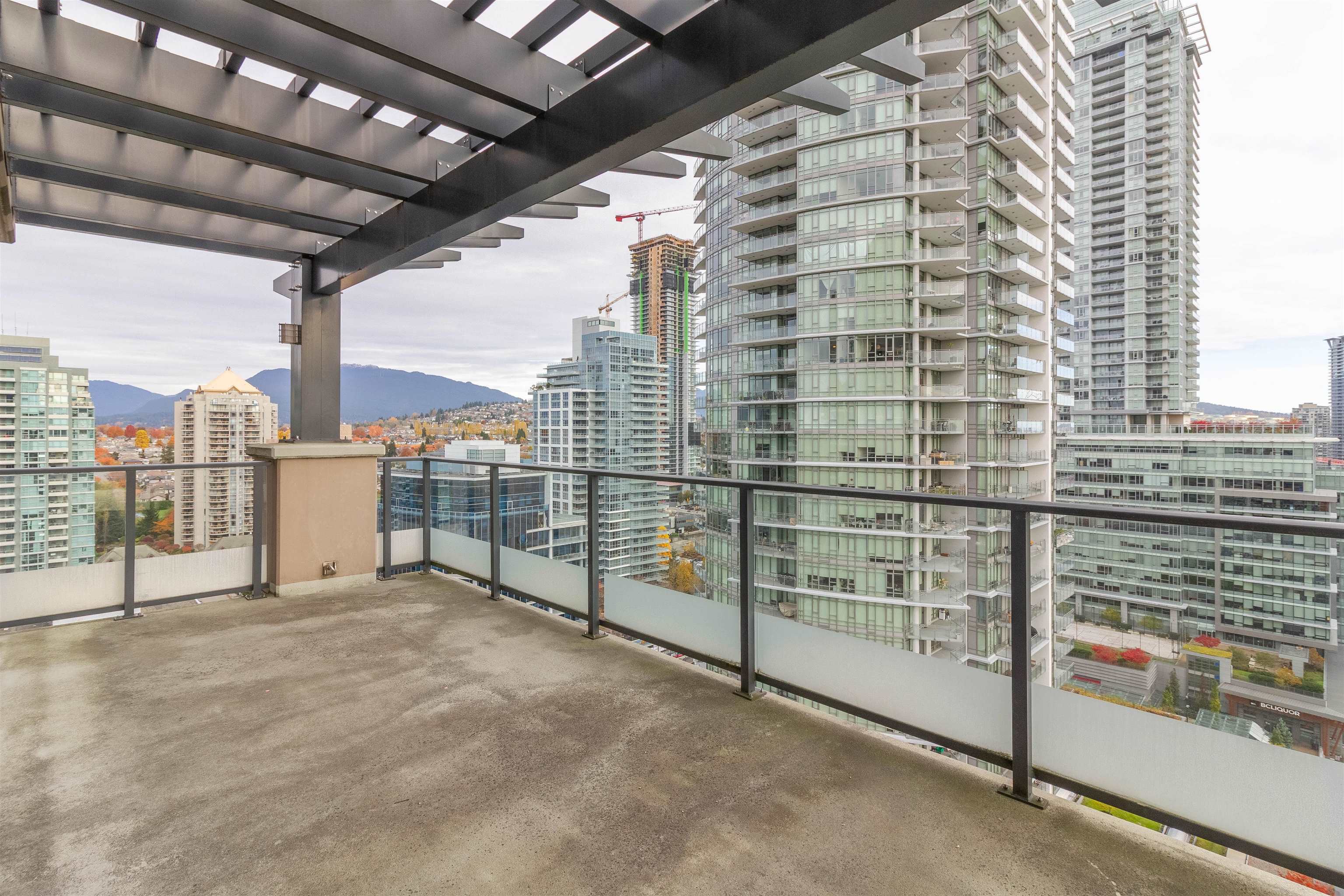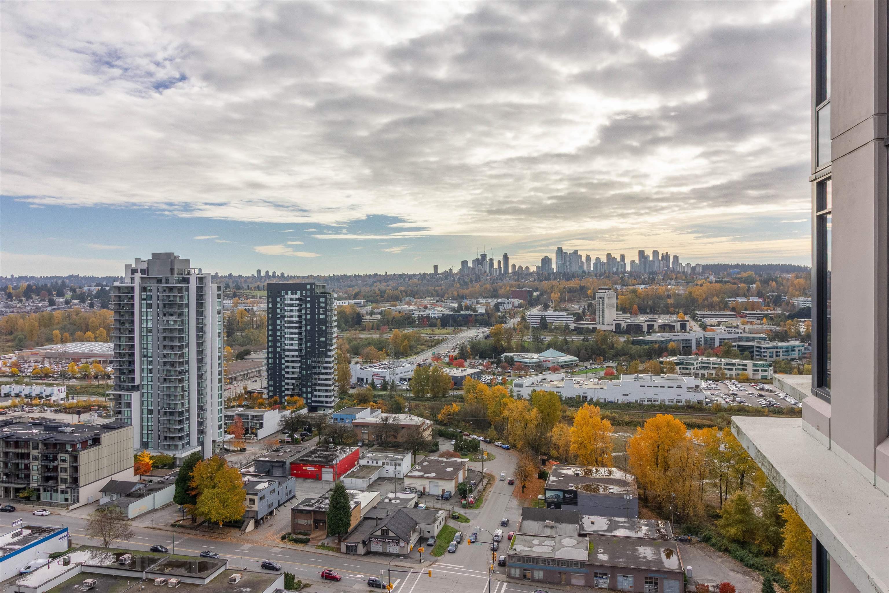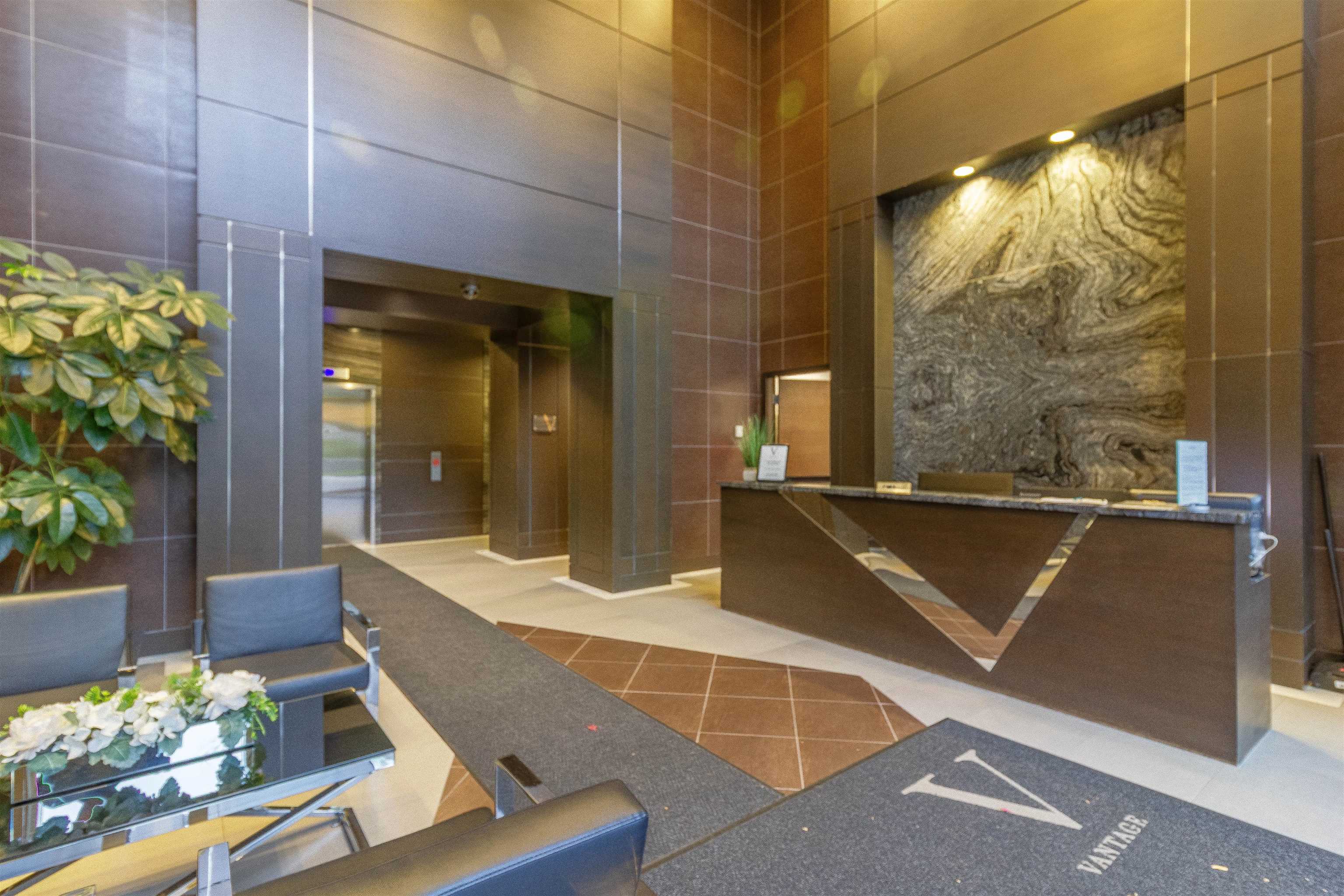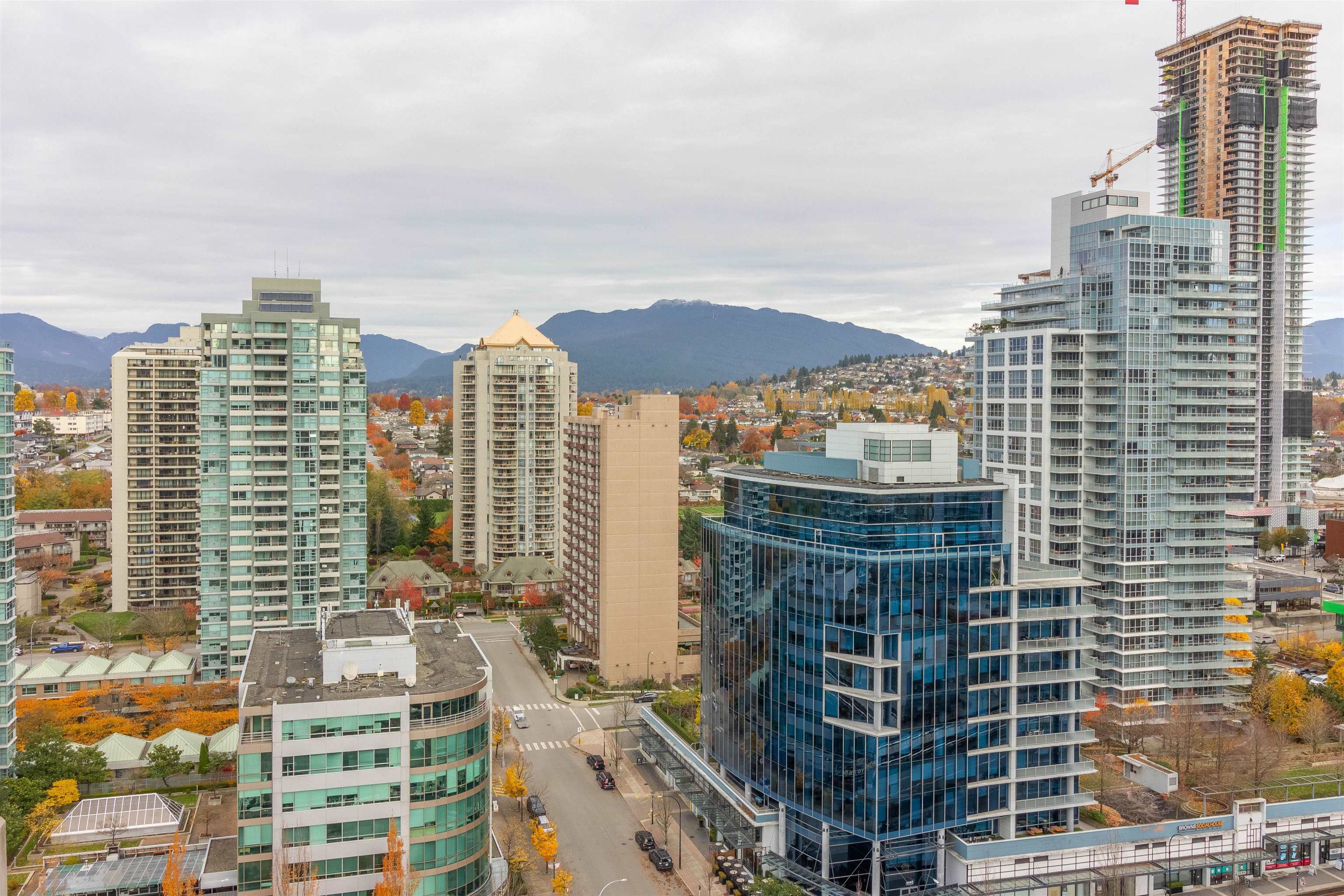 Welcome to VANTAGE by BOSA, a gem in the Heart of Brentwood! Perched high above the city, this spacious 2-bed+open den 2-bath home offers impressive 1248sf with 9' ceilings that flood the home with natural light. One of two unique layouts on the higher floors, this is truly a rare offering. Enjoy two balconies capturing panoramic southern city views and northeast mountain vistas. Open-concept living and dining areas flow into the kitchen with granite countertops and ample cabinetry. Primary suite is a true retreat, complete with an ensuite bathroom and spacious walk-in closet. Both bedrooms have access to the second private balcony. Amenities include concierge, gym, hot tub, sauna, and resident's lounge. Steps to Amazing Brentwood, Skytrain, shops and restaurants.