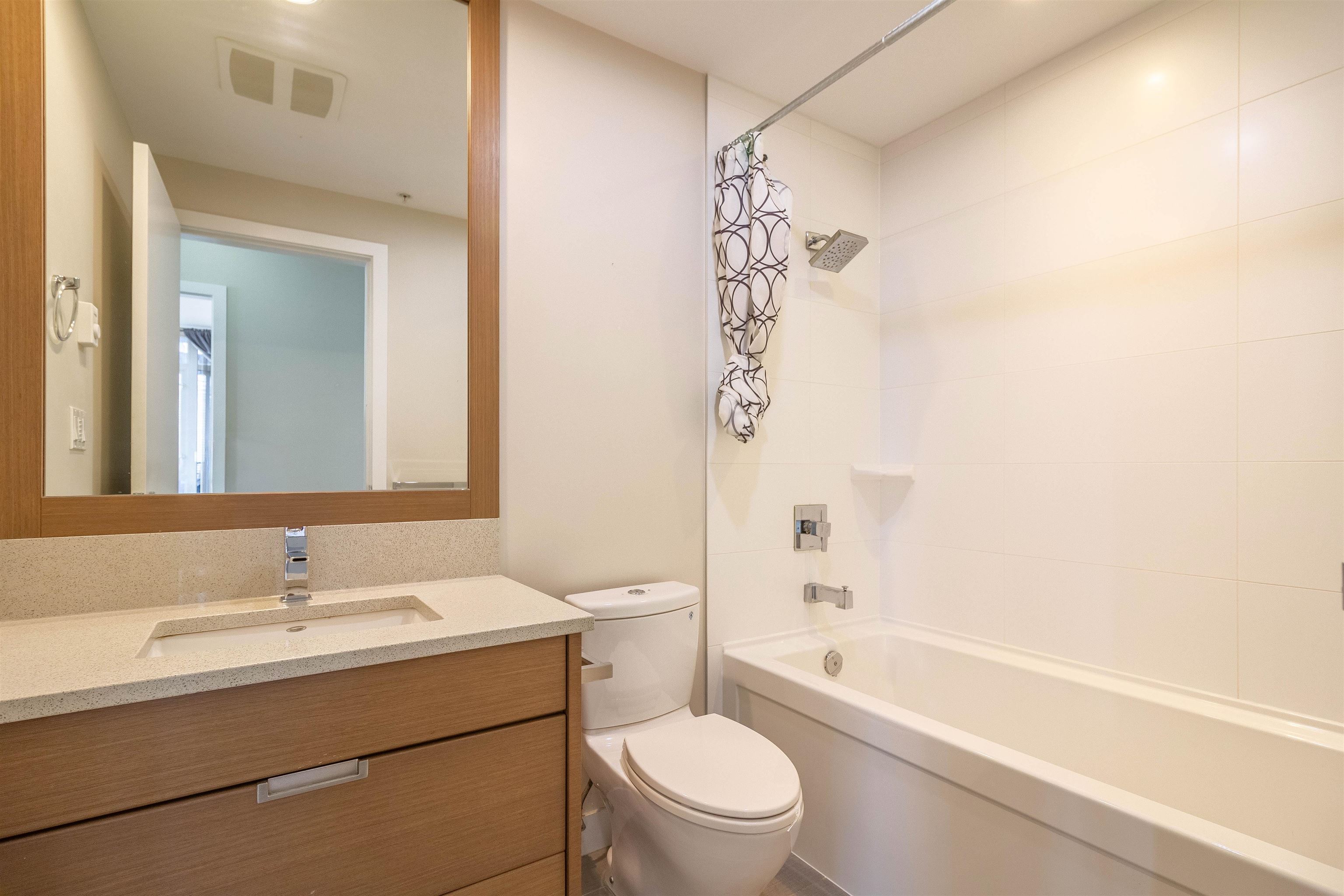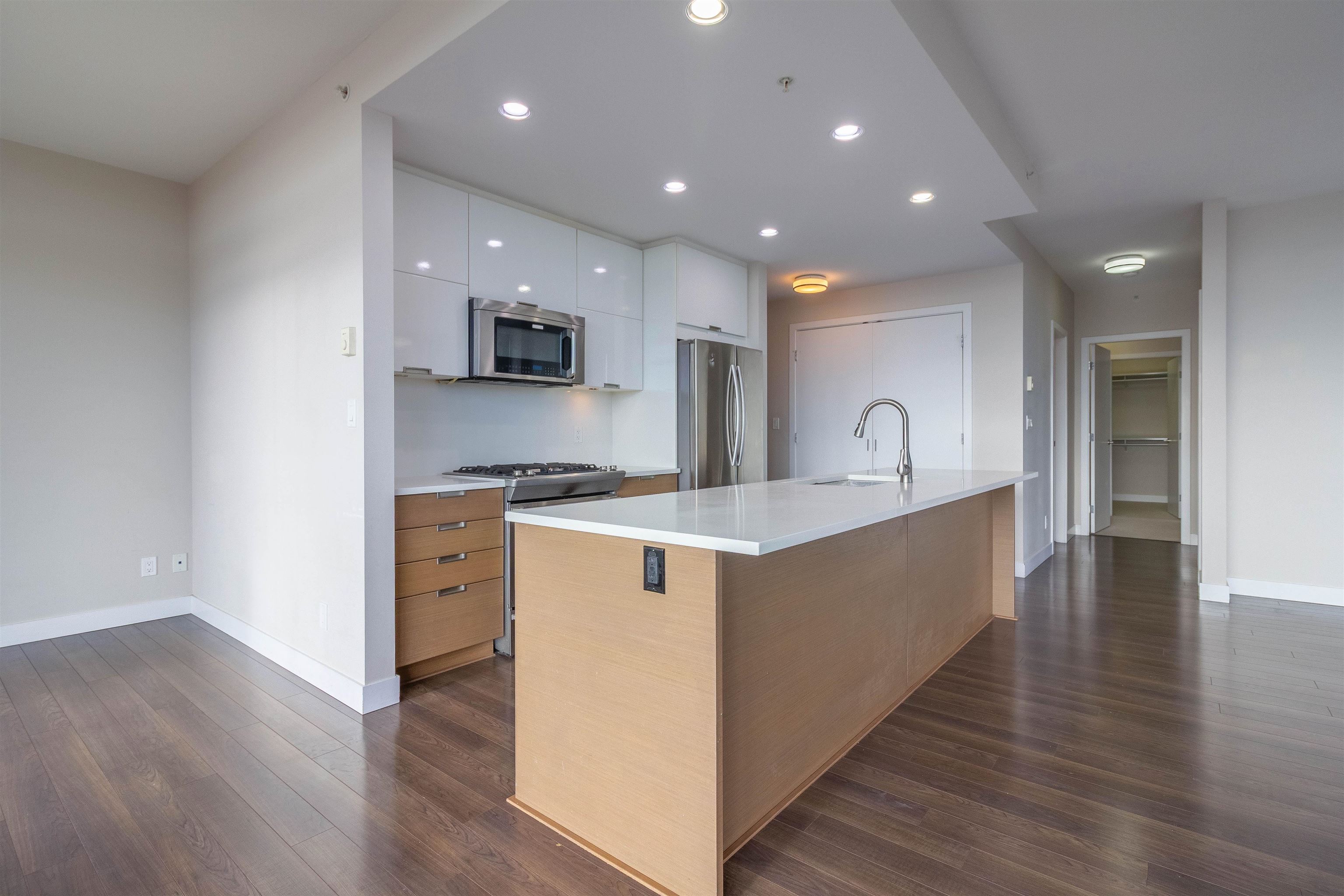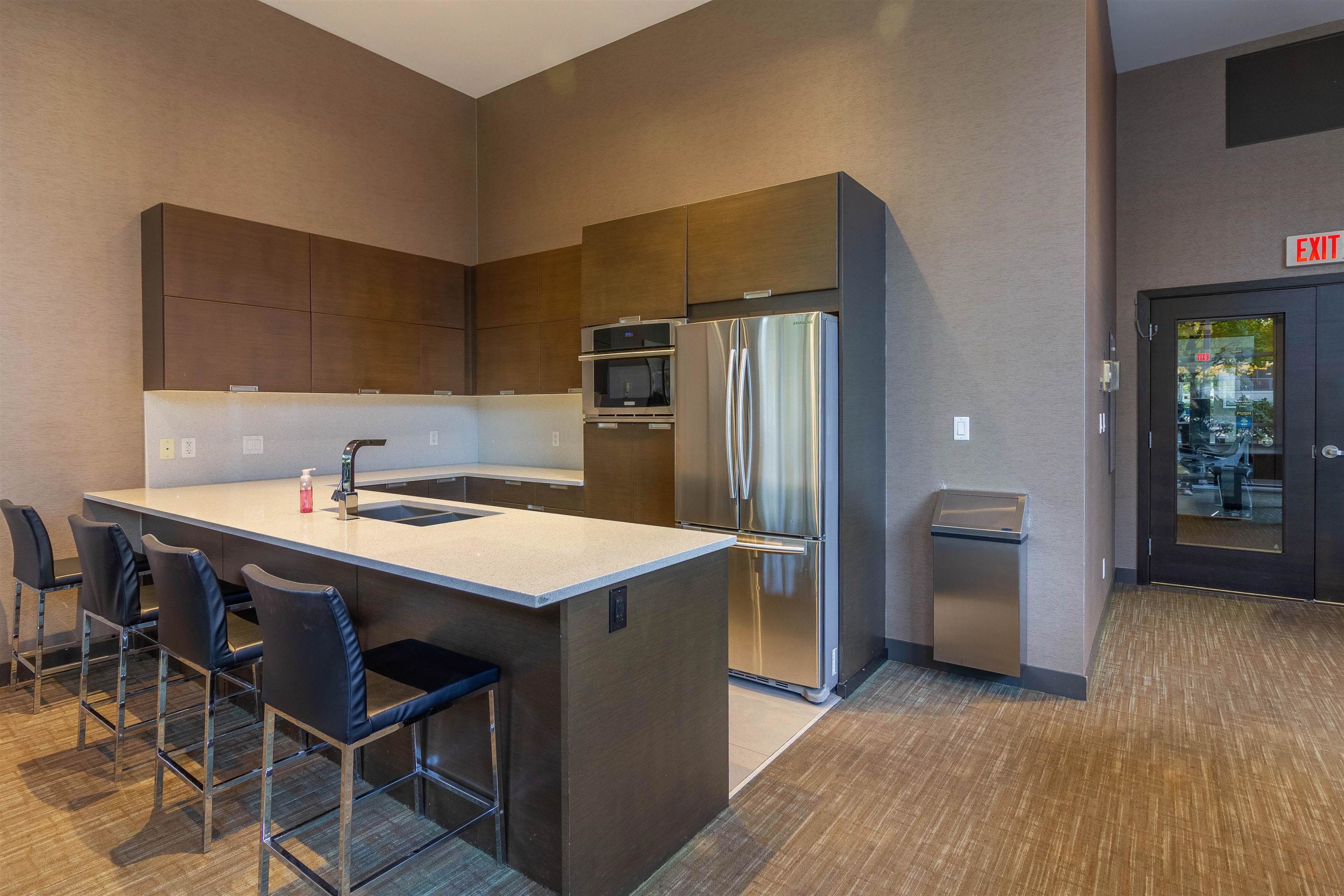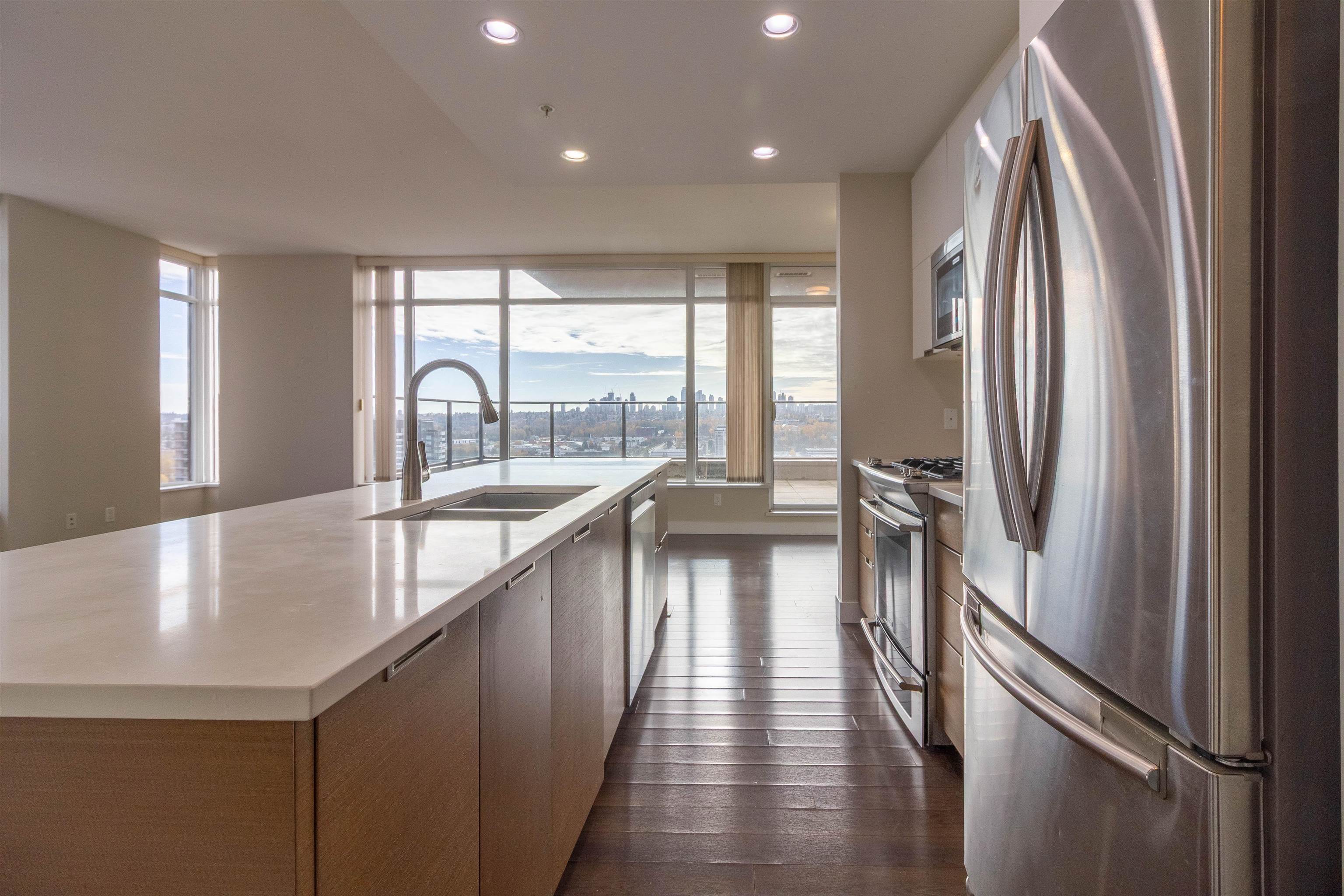Welcome to VANTAGE by BOSA, a gem in the Heart of Brentwood! Perched high above the city, this spacious 2-bed+open den 2-bath home offers impressive 1248sf with 9' ceilings that flood the home with natural light. One of two unique layouts on the higher floors, this is truly a rare offering. Enjoy two balconies capturing panoramic southern city views and northeast mountain vistas. Open-concept living and dining areas flow into the kitchen with granite countertops and ample cabinetry. Primary suite is a true retreat, complete with an ensuite bathroom and spacious walk-in closet. Both bedrooms have access to the second private balcony. Amenities include concierge, gym, hot tub, sauna, and resident's lounge. Steps to Amazing Brentwood, Skytrain, shops and restaurants.