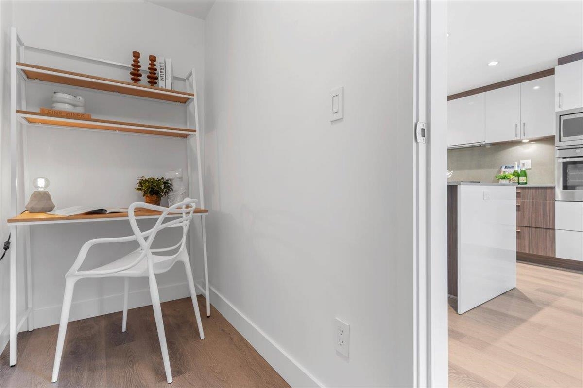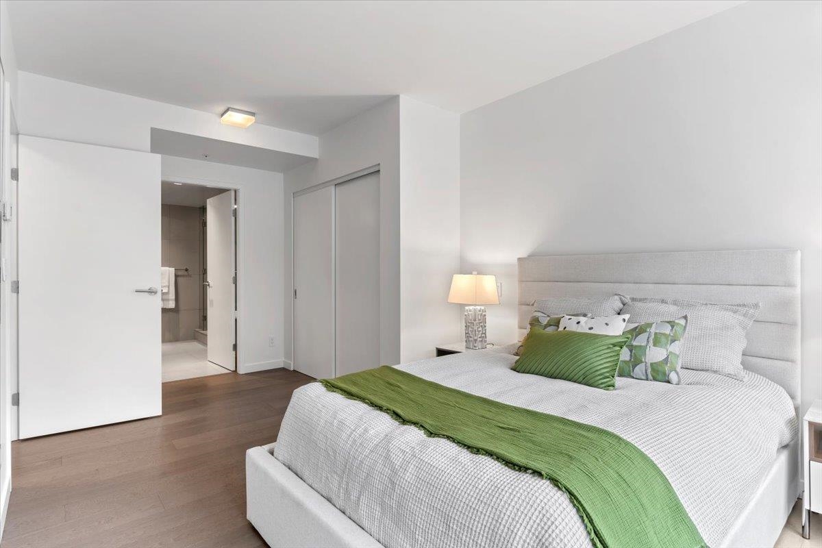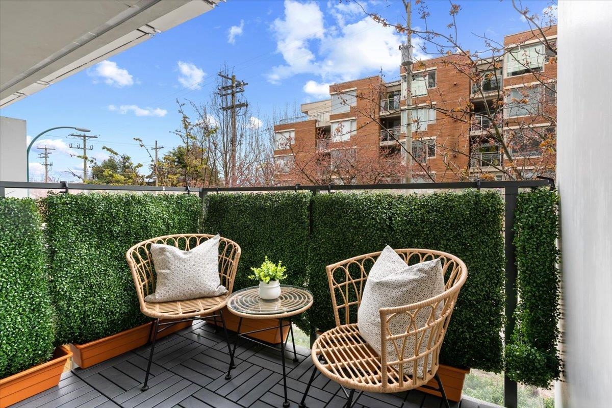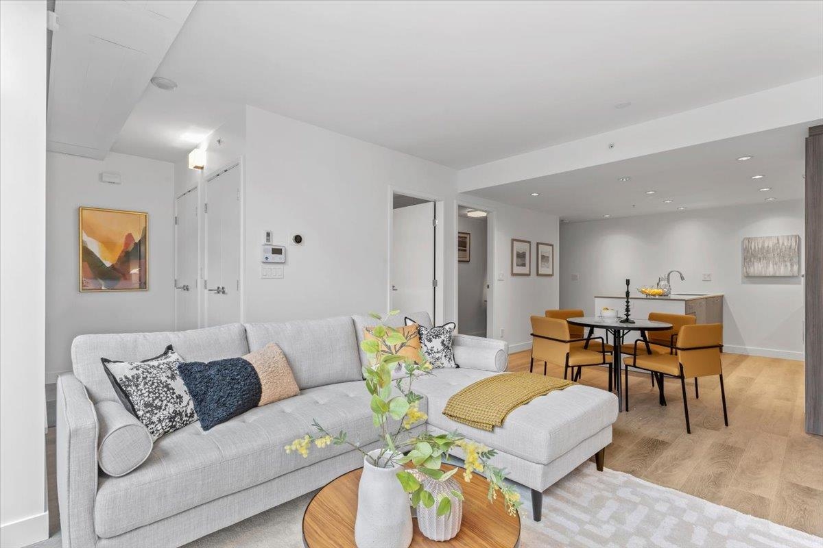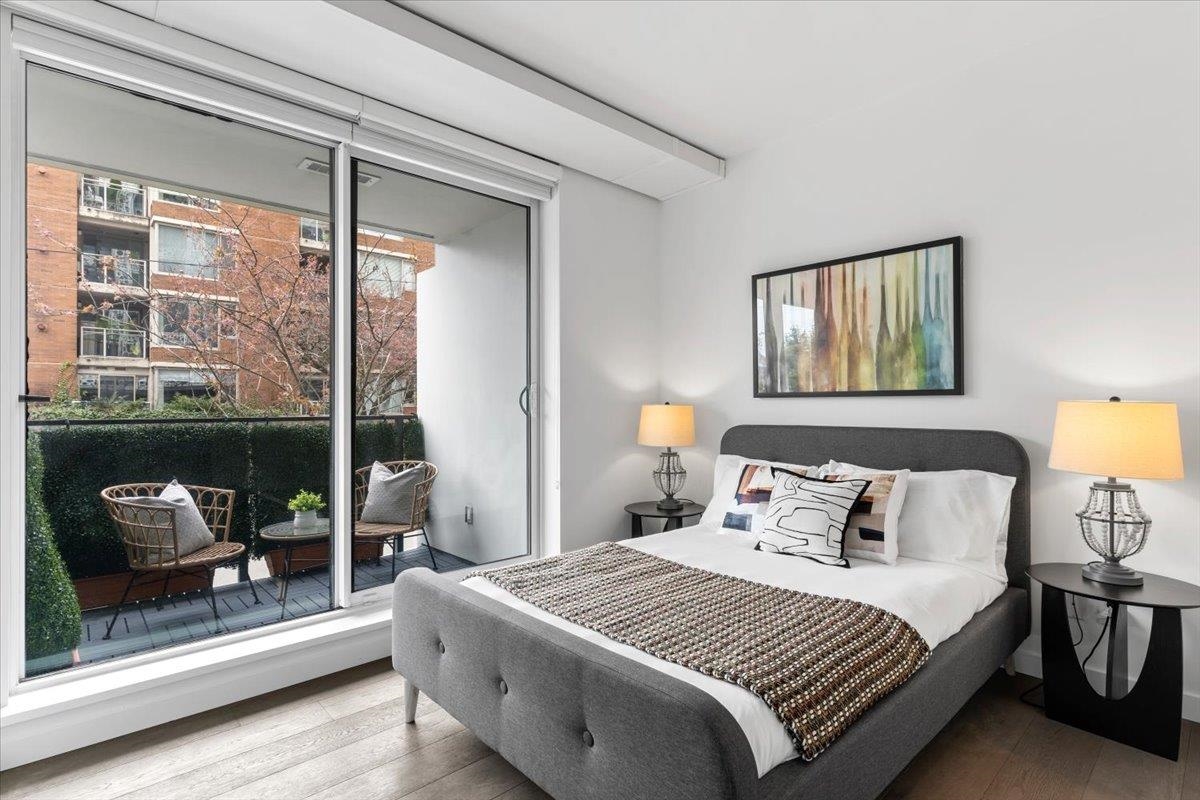 Welcome to 700 WEST 8TH, by Westbank & Peterson Group. Luxurious interiors by MGB Design complement the iconic building design by Henriquez Partners Architects. This elegant 2-level townhome boasts a generous main living area that seamlessly connects to a spacious kitchen and dining space, perfect for entertaining. The kitchen features a large island with a breakfast bar and high-end s/s appliances. Throughout the home, enjoy radiant heating and sleek oak floors. The main floor includes a convenient powder room and storage that can double as an office. Upstairs, discover 2 bdrm, 2 full baths, and laundry. Recently painted with new high-end blinds for added privacy, this home is move-in ready. Situated in a prime location near the Canada Line, VGH, Whole Foods and much more!