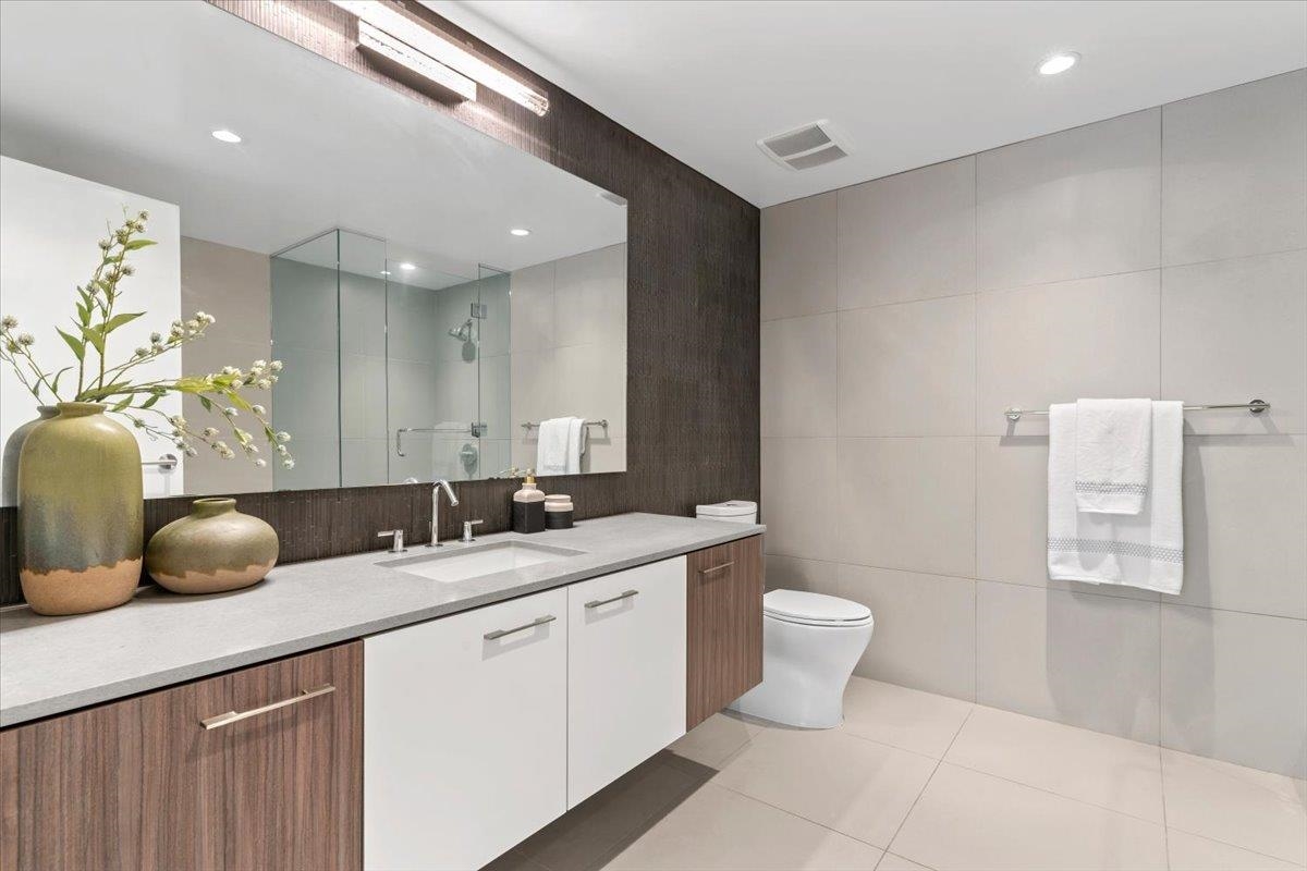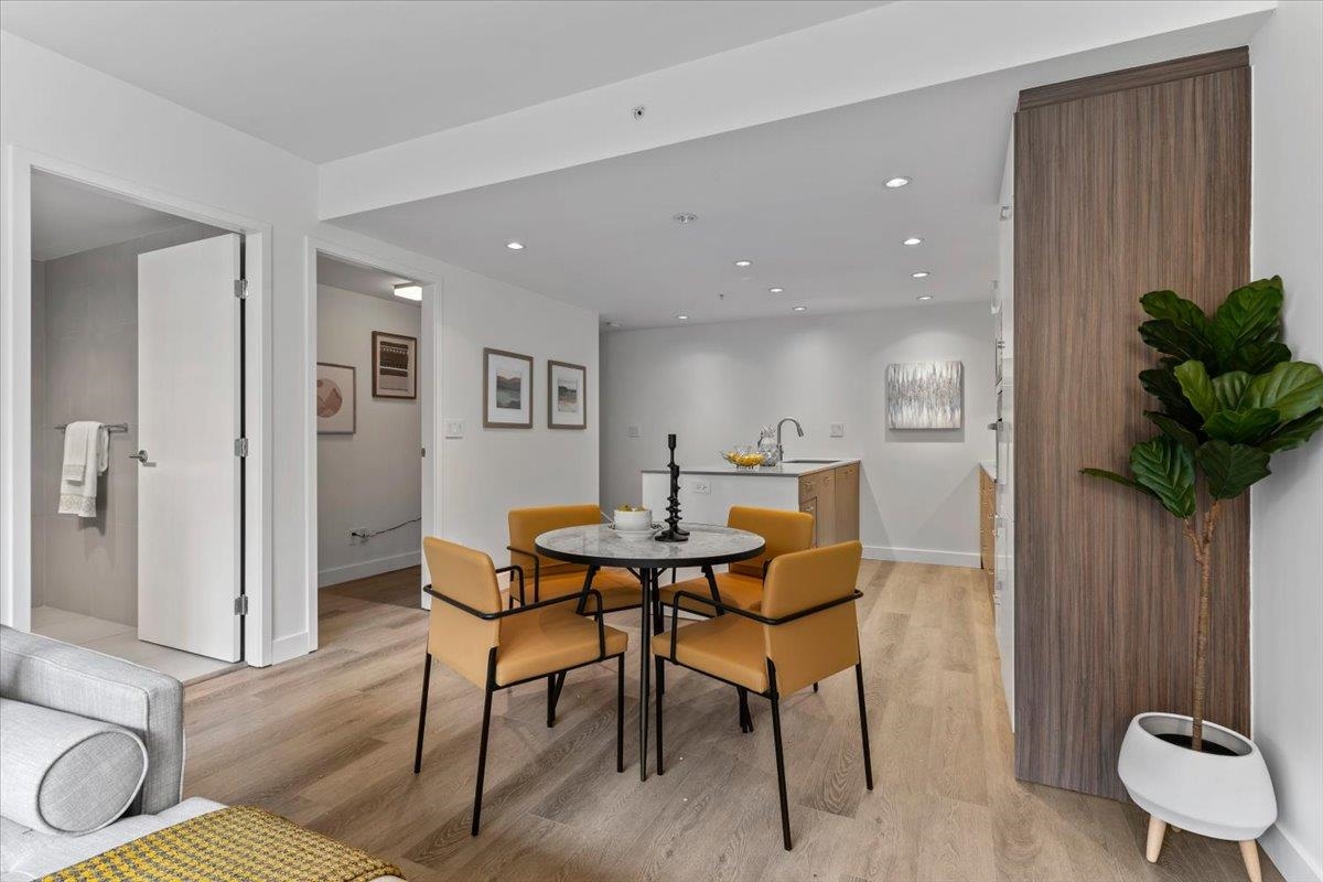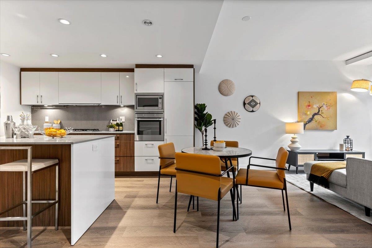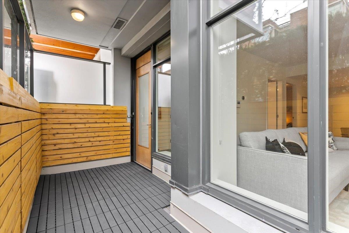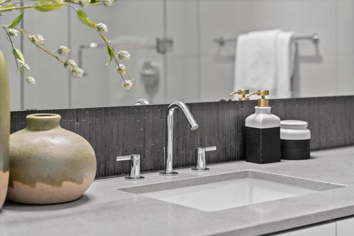 Welcome to 700 WEST 8TH, by Westbank & Peterson Group. Luxurious interiors by MGB Design complement the iconic building design by Henriquez Partners Architects. This elegant 2-level townhome boasts a generous main living area that seamlessly connects to a spacious kitchen and dining space, perfect for entertaining. The kitchen features a large island with a breakfast bar and high-end s/s appliances. Throughout the home, enjoy radiant heating and sleek oak floors. The main floor includes a convenient powder room and storage that can double as an office. Upstairs, discover 2 bdrm, 2 full baths, and laundry. Recently painted with new high-end blinds for added privacy, this home is move-in ready. Situated in a prime location near the Canada Line, VGH, Whole Foods and much more!