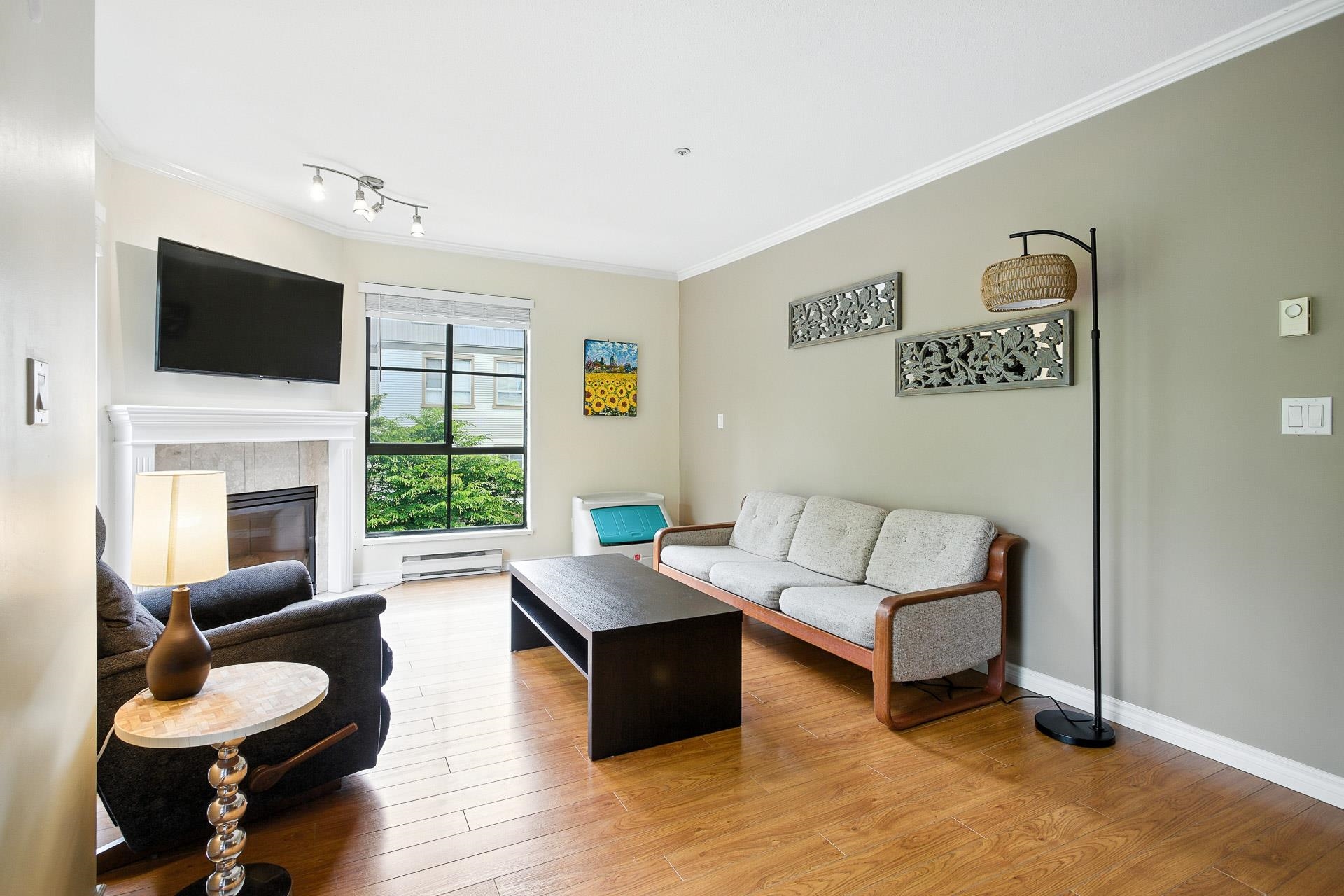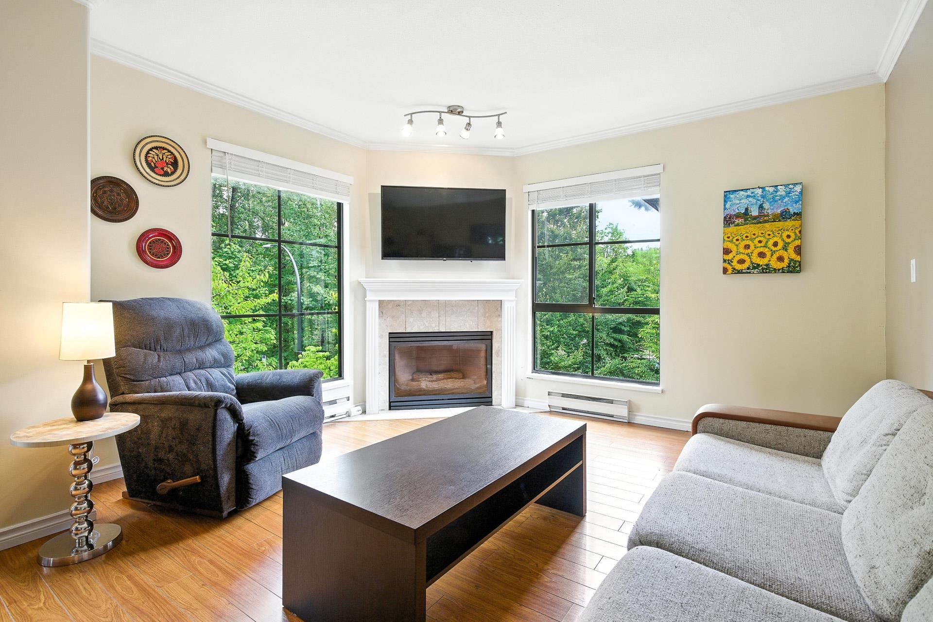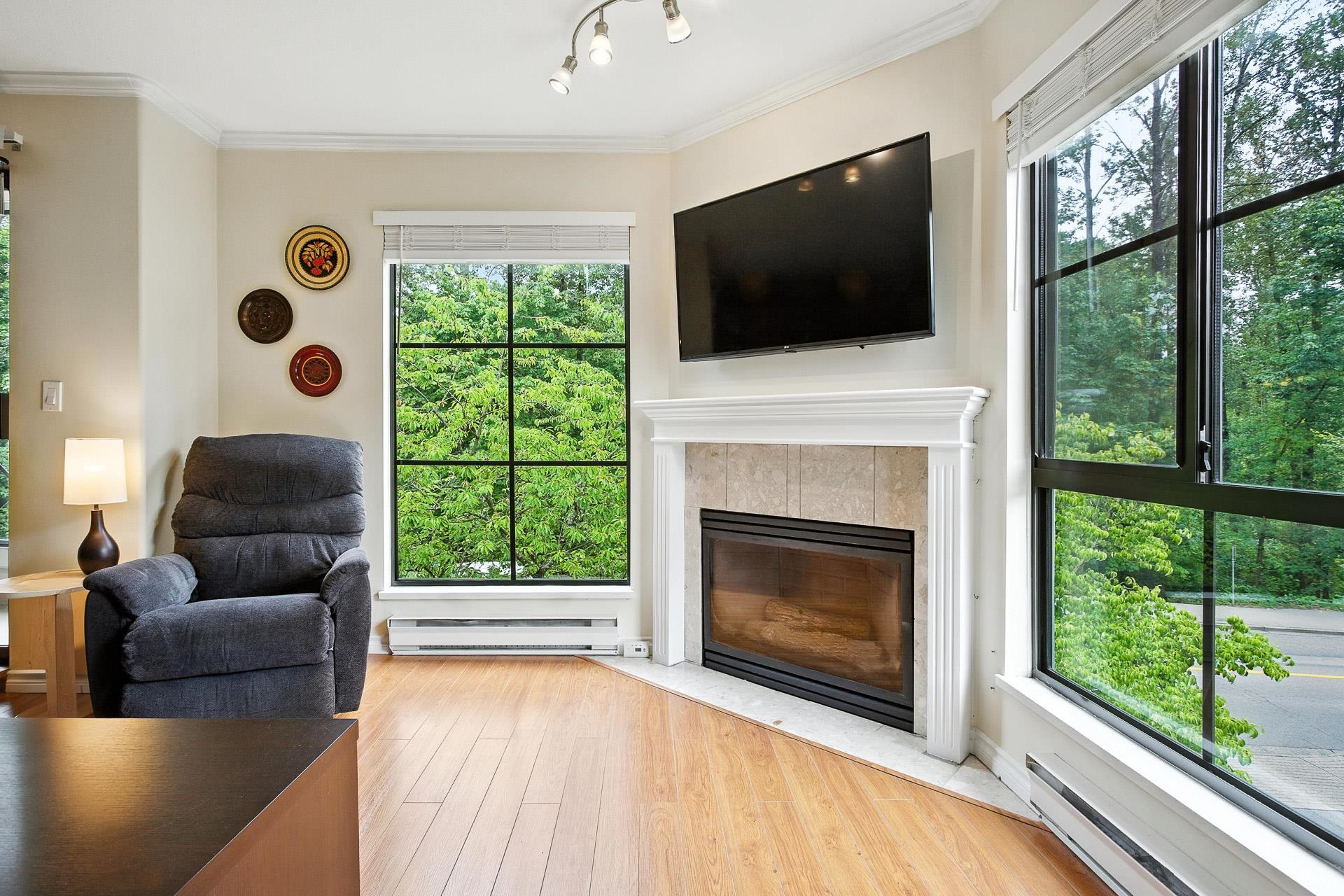 With a Walk Score of 90, this beautifully updated corner unit offers the perfect mix of urban convenience and natural beauty. As an end unit, it features extra windows with stunning views of the Northside mountains, Coquitlam River, and the tree-lined Poco Trail. The bright, open layout includes a cozy gas fireplace and a stylish kitchen with quartz countertops, stainless steel appliances, and a double-door fridge. Located on a quiet, tree-lined street just stones throw to Gates Park, trails, shopping, restaurants, and transit. Comes with two secured parking spots. Pet lovers rejoice—up to 3 cats or dogs allowed. Nestled between two parks and overlooking a tree line, this is truly one of downtown Port Coquitlam’s most desirable locations. Don’t miss out on this well managed building.