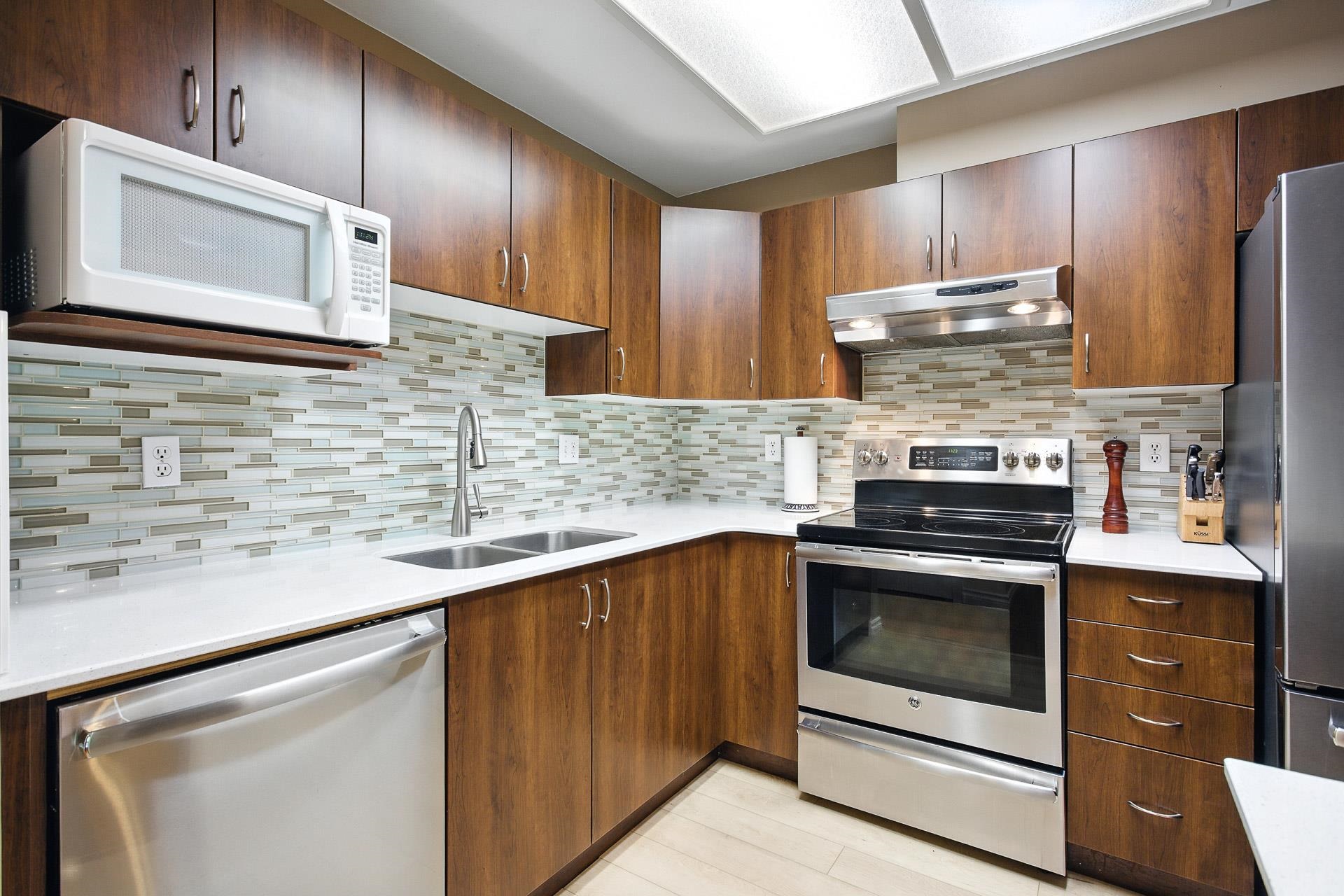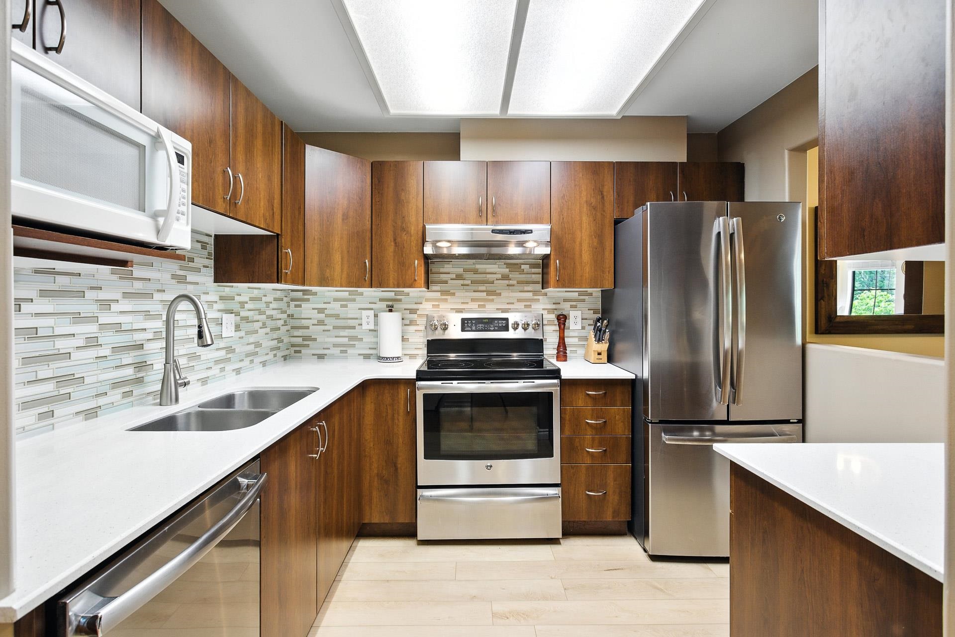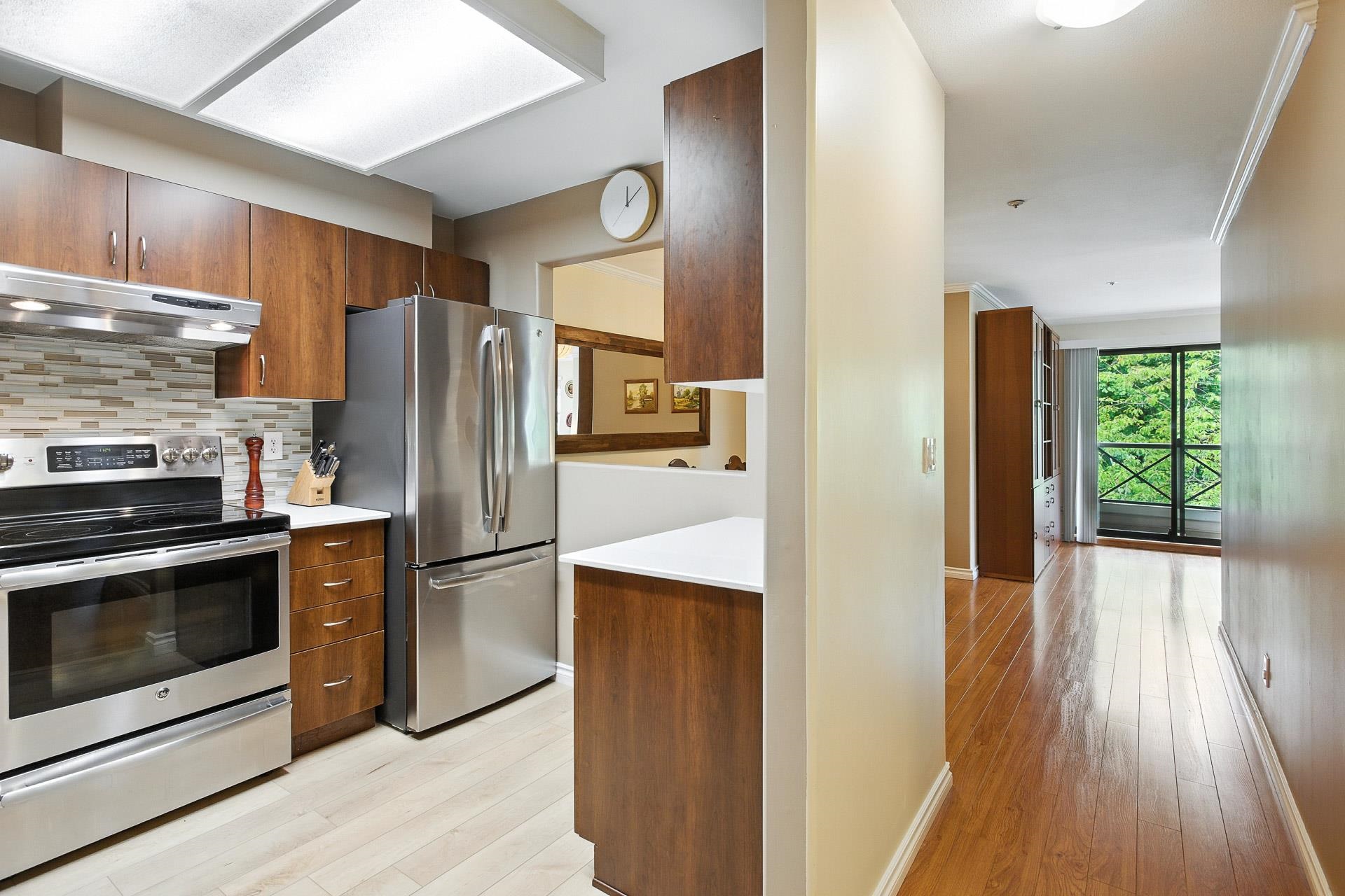 With a Walk Score of 90, this beautifully updated corner unit offers the perfect mix of urban convenience and natural beauty. As an end unit, it features extra windows with stunning views of the Northside mountains, Coquitlam River, and the tree-lined Poco Trail. The bright, open layout includes a cozy gas fireplace and a stylish kitchen with quartz countertops, stainless steel appliances, and a double-door fridge. Located on a quiet, tree-lined street just stones throw to Gates Park, trails, shopping, restaurants, and transit. Comes with two secured parking spots. Pet lovers rejoice—up to 3 cats or dogs allowed. Nestled between two parks and overlooking a tree line, this is truly one of downtown Port Coquitlam’s most desirable locations. Don’t miss out on this well managed building.