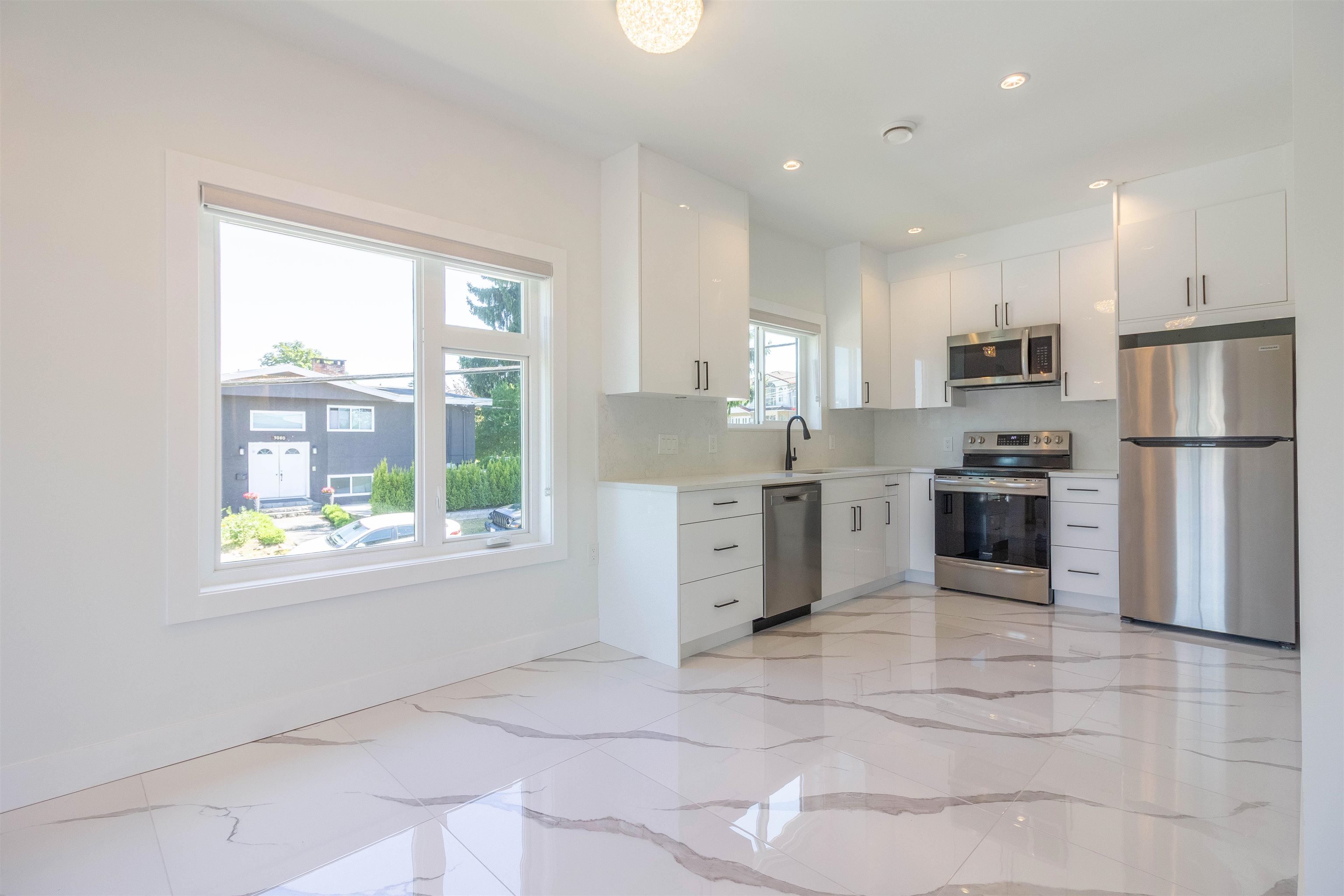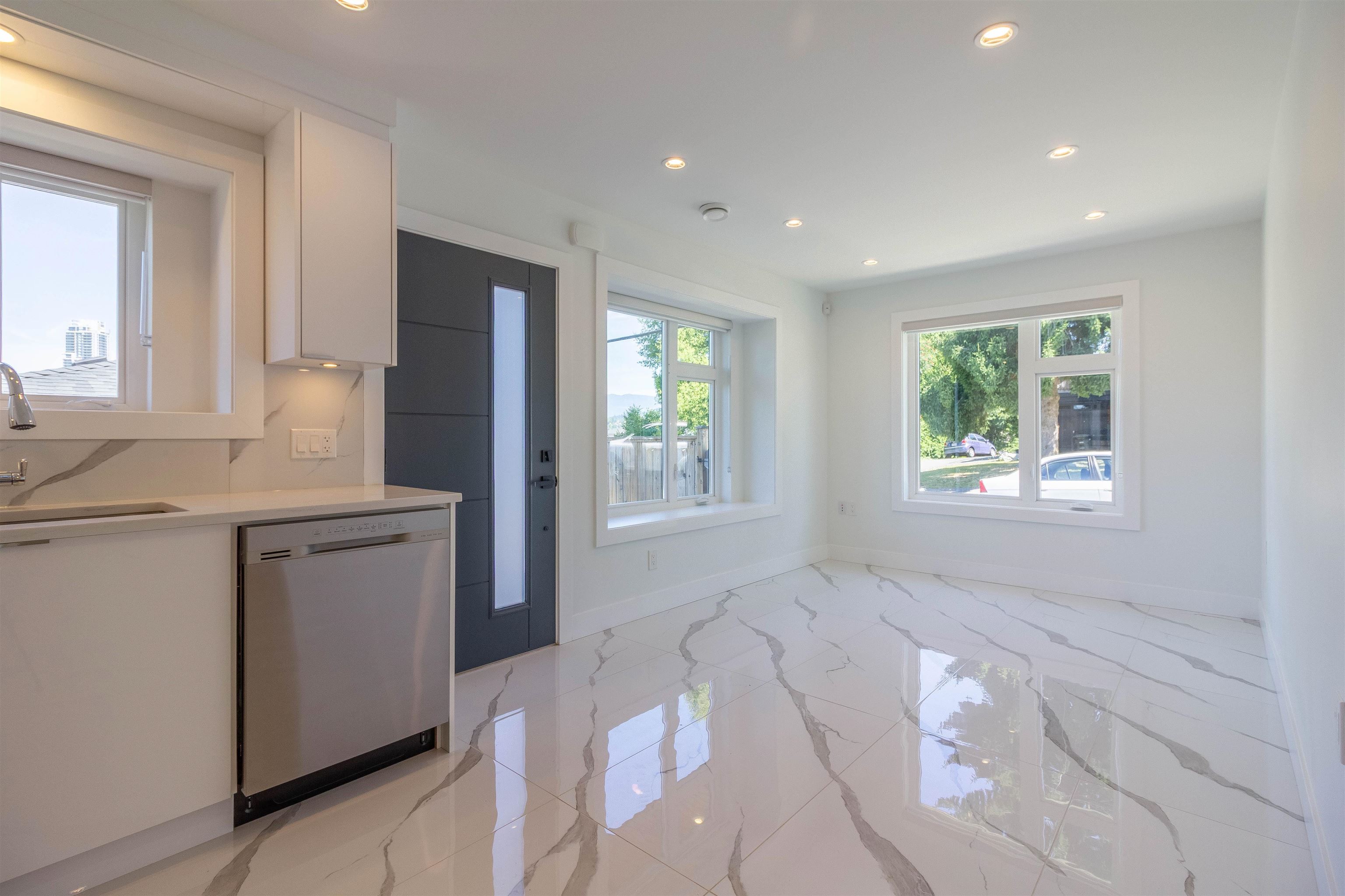 Discover this new never-lived-in rear half duplex in the heart of Central Burnaby- where the back half truly is the better half. Enjoy stunning views of the North Shore mountains and Brentwood city skyline from your own home. Offering 4 bedrooms, 2 bathrooms and 2 kitchens. The flexible lower level can serve as a 1-or 2-bedroom suite for an excellent mortgage helper or in-law suite. The location is unbeatable: a short 10mins walk to BCIT, 10 mins drive to both Brentwood and Metrotown Centres for premium restaurants, entertainment and conveniences. Simon Fraser is a 15mins drive. A rare combination of views, versatility, and central conveniences-truly a hidden gem in this neighbourhood.