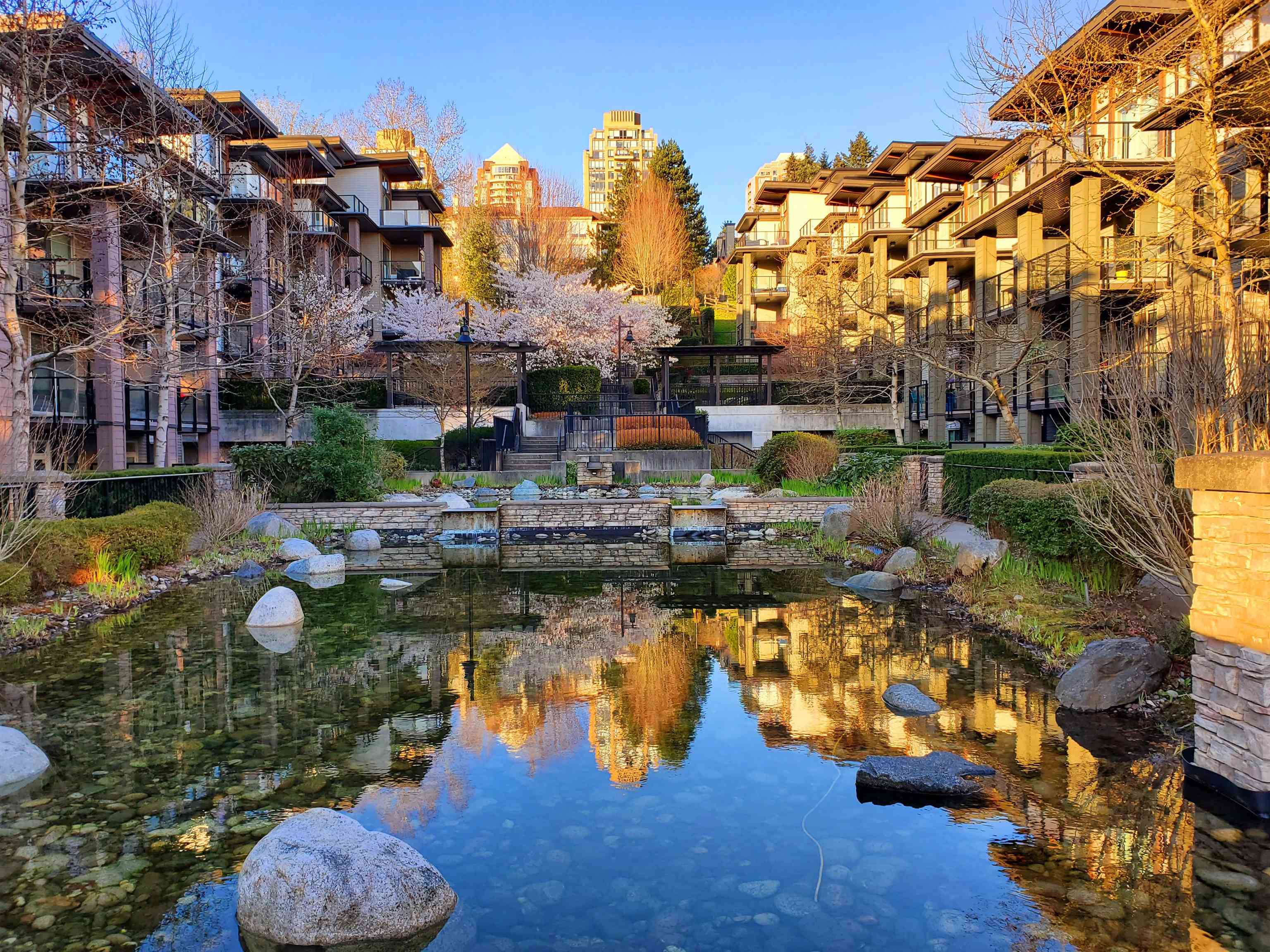 Rarely found! Imagine, you can enjoy Cherry Blossom from your private HUGE 10x11 balcony! This is high-ceiling CORNER 3-bed, 2-bath unit in the family oriented community GREEN by award-winning Adera. Overlooking quiet landscaped courtyard with different beautiful views ALL YEAR AROUND makes this unit the best in the area. Lovingly maintained by conscientious owner, this home really shines. Right next to Byrne Creek Ravine Park. Only minutes walk to Taylor Park Elementary, daycare, Edmonds Skytrain & short drive to the shops at Market Crossing & Metrotown. Easy to show! Do not miss it!