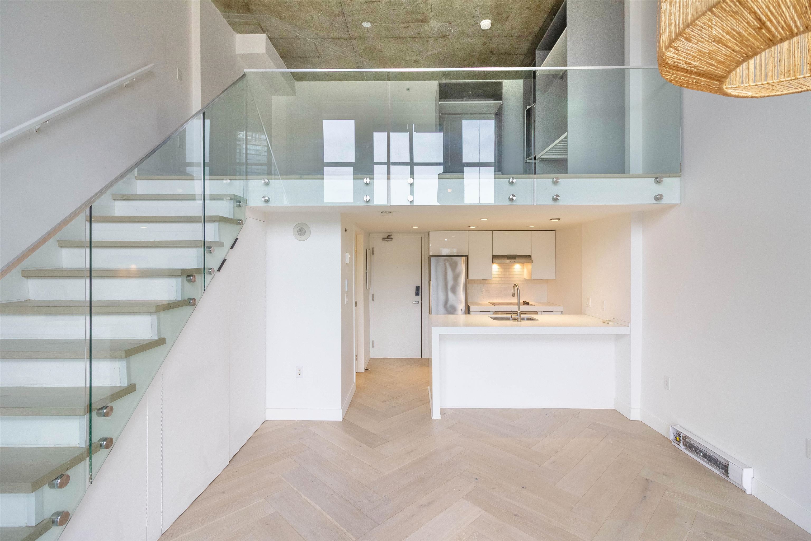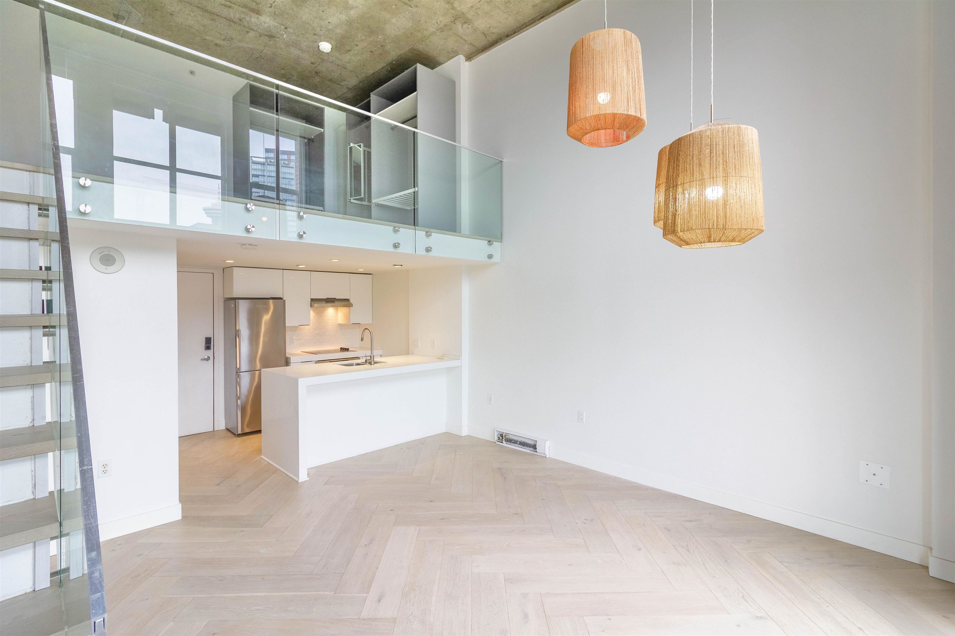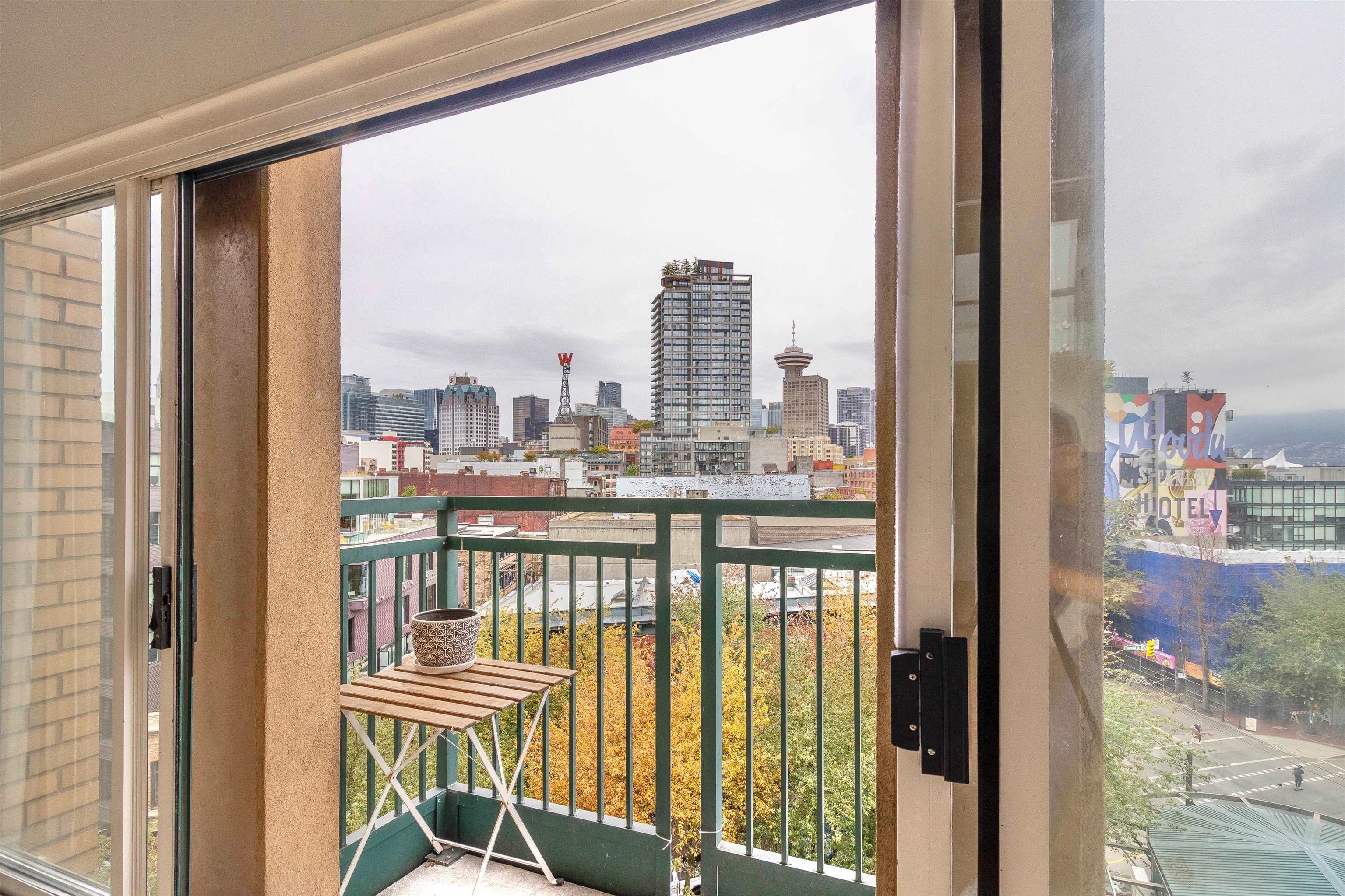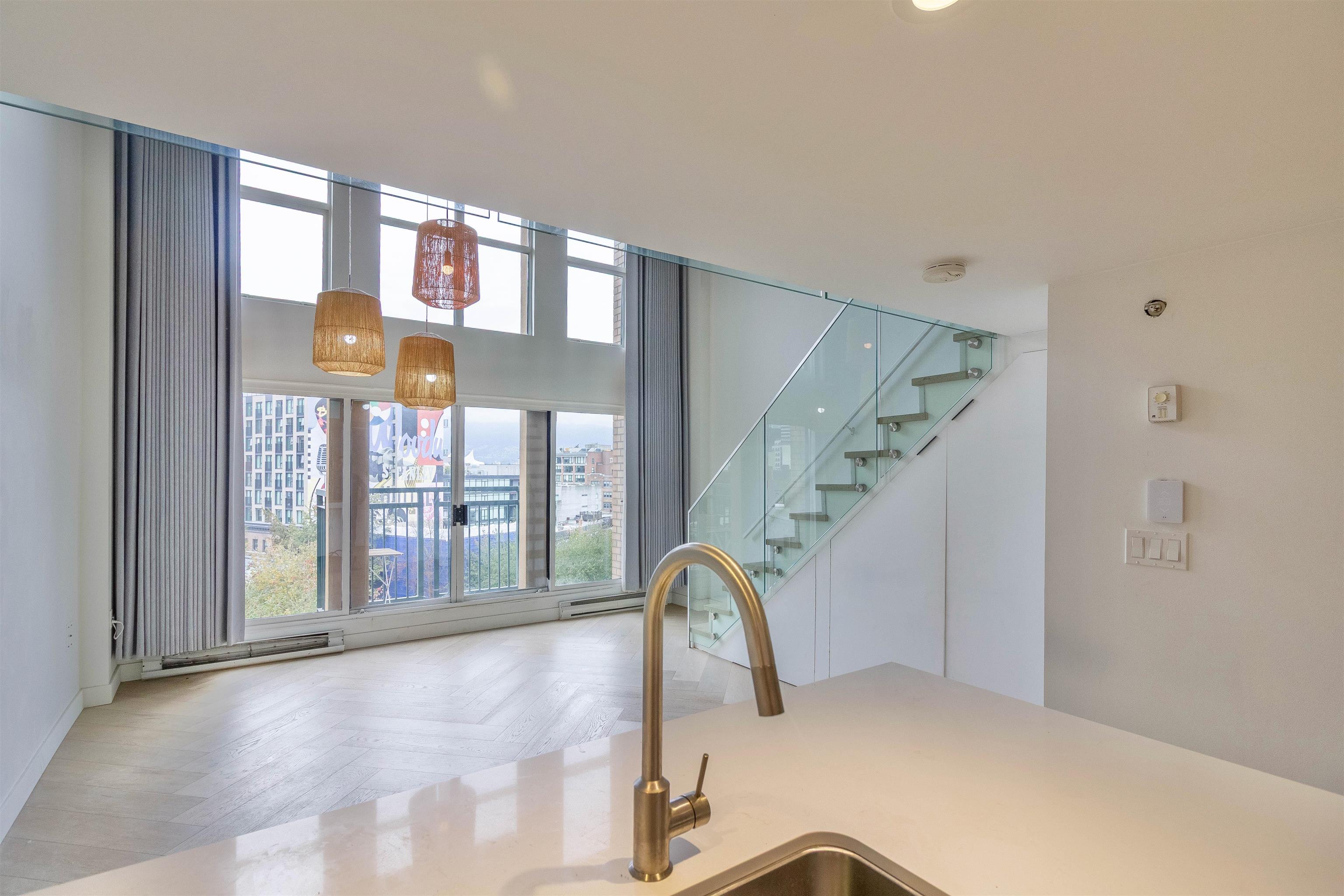Welcome to the Van Horne Lofts in Gastown! This stylish 1 bed, 1 bath loft offers the perfect blend of historic charm and modern updates. Soaring 15 ft ceilings and large windows flood the space with natural light, creating an airy, open feel. Recent upgrades include beautiful engineered hardwood flooring and updated bathroom wall tiles, giving the home a fresh contemporary look. Step out onto your private balcony and take in the urban energy of this iconic neighbourhood. Located just steps to trendy cafes, boutiques, restaurants, and transit-everything is at your doorstep. Ideal for first-time buyers or investors. Don't miss your chance to own a piece of Gastown's character-come see it today!